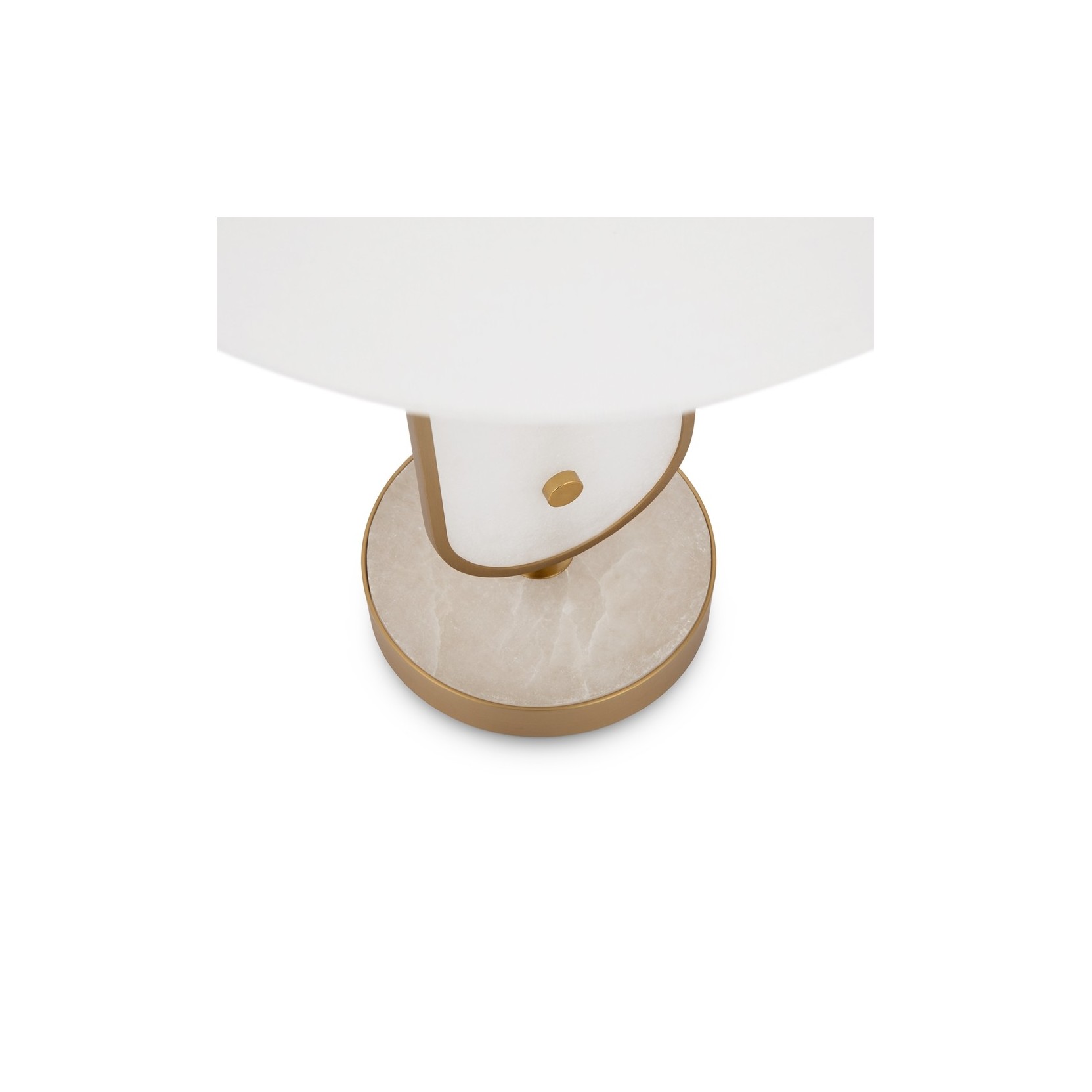 The Marmo lamp stands out for its sculptural lampshade, composed of four vertical petals in smoky acrylic glass (or translucent polycarbonate). These curved wings, arranged symmetrically around the luminous core, create a silhouette reminiscent of a stylized flower bud. The choice of smoky material allows the light to diffuse softly, creating an intriguing interplay of overlaps and gradients that vary in intensity depending on the point of observation.