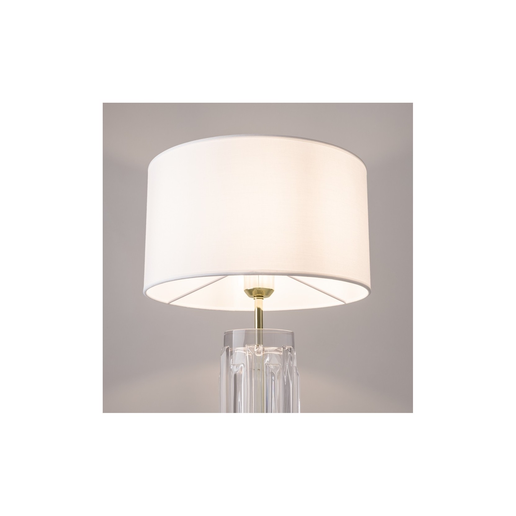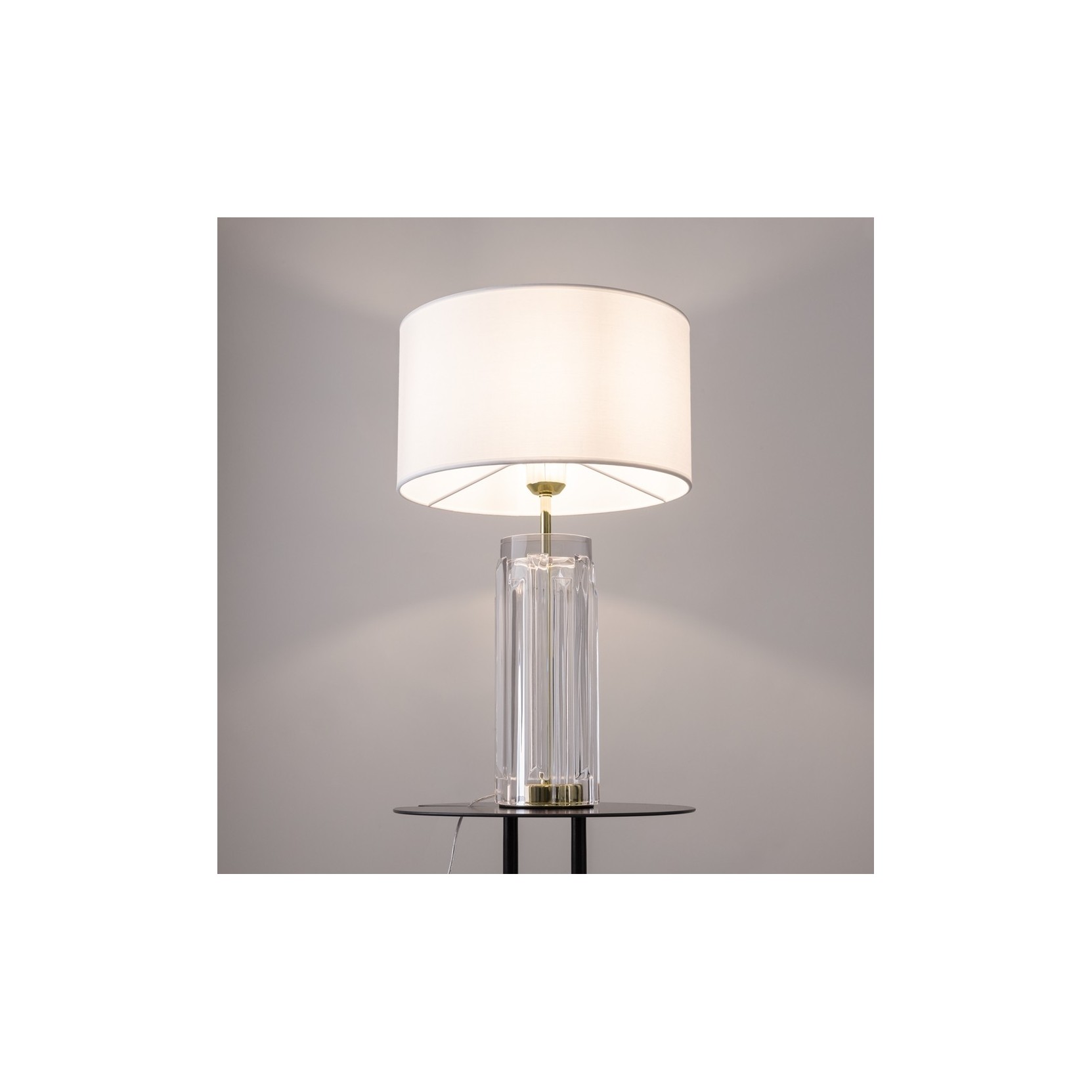 Add a touch of discreet luxury to your rooms with the Muse table lamp. This furnishing accessory combines the sculptural solidity of crystal with the softness of a fabric lampshade, creating a perfect balance between classicism and modernity. It is the ideal object for those who desire lighting that is, at the same time, a precious work of art.