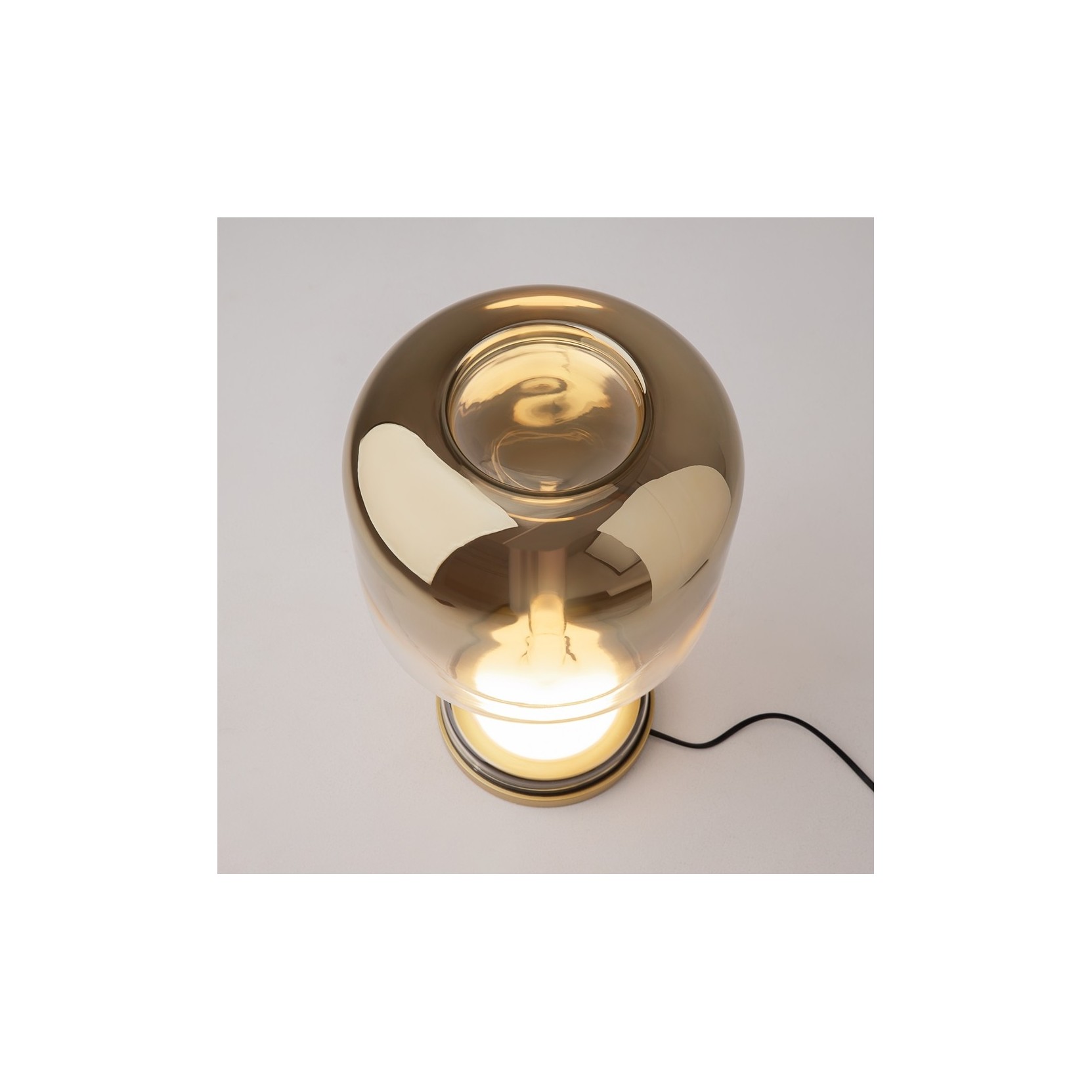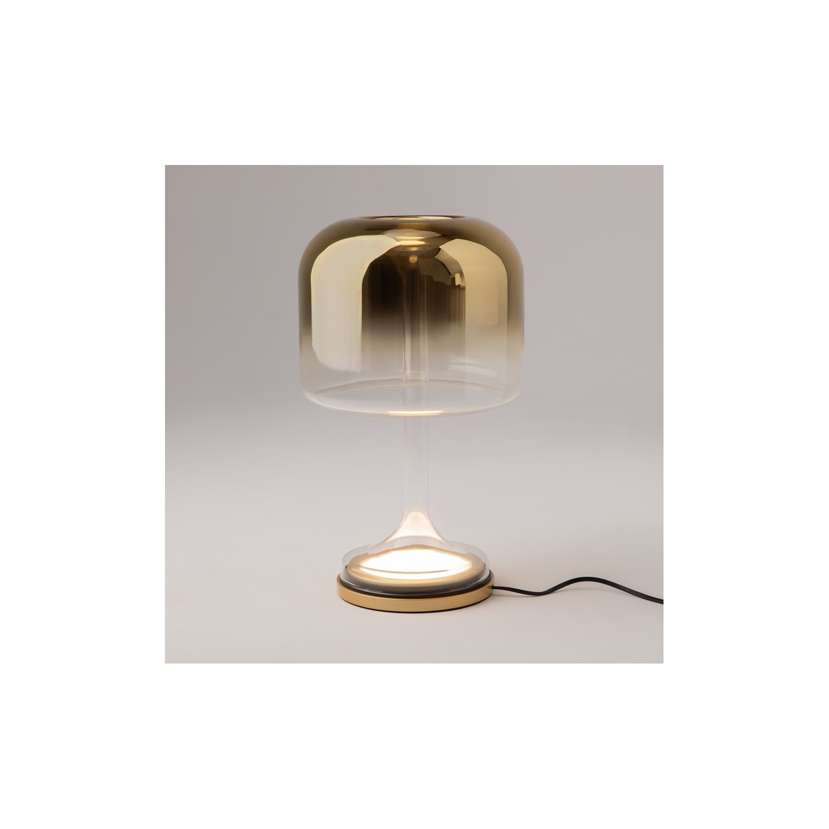 The Spirito table lamp is a design object that celebrates the beauty of blown glass and the preciousness of metal finishes. A natural evolution of the namesake suspension version, this table lamp stands out for its modern and luxurious take on the "mushroom" silhouette, capable of transforming light into a vibrant furnishing element.