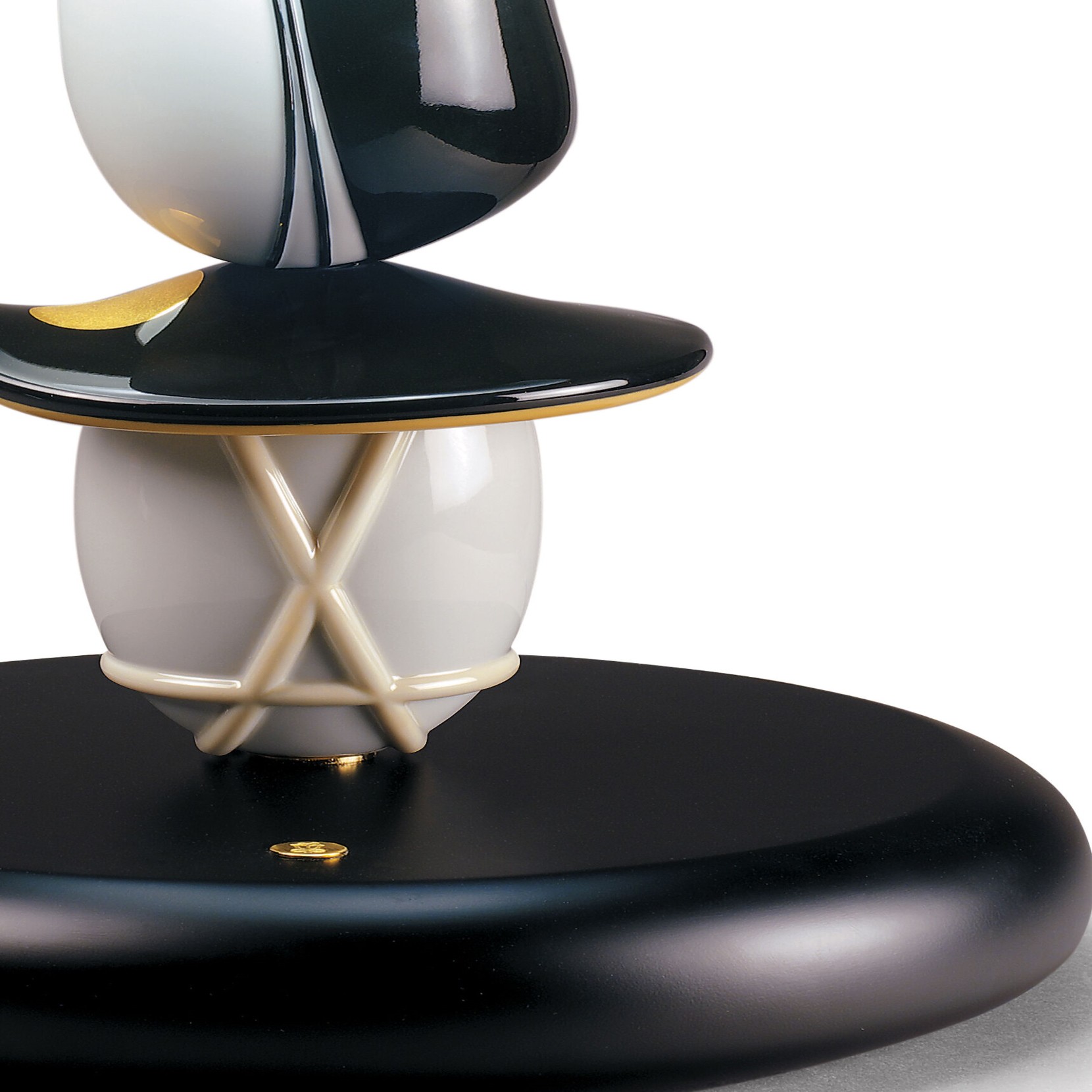 The Hairstyle lamp collection has been created by the team of Lladró Atelier, the laboratory of ideas of the brand, in collaboration with the Japanese designer Hisakazu Shimizu. They are inspired by historical Japanese characters who dictate the trends for their fabulous hairstyles. Decorated in black and white with touches of golden shine, the screens have blown Murano glass in different layers that are inspired by the Sandogasa hats"", used in medieval Japan for sun protection during long trips. The base is in satin black lacquered wood.