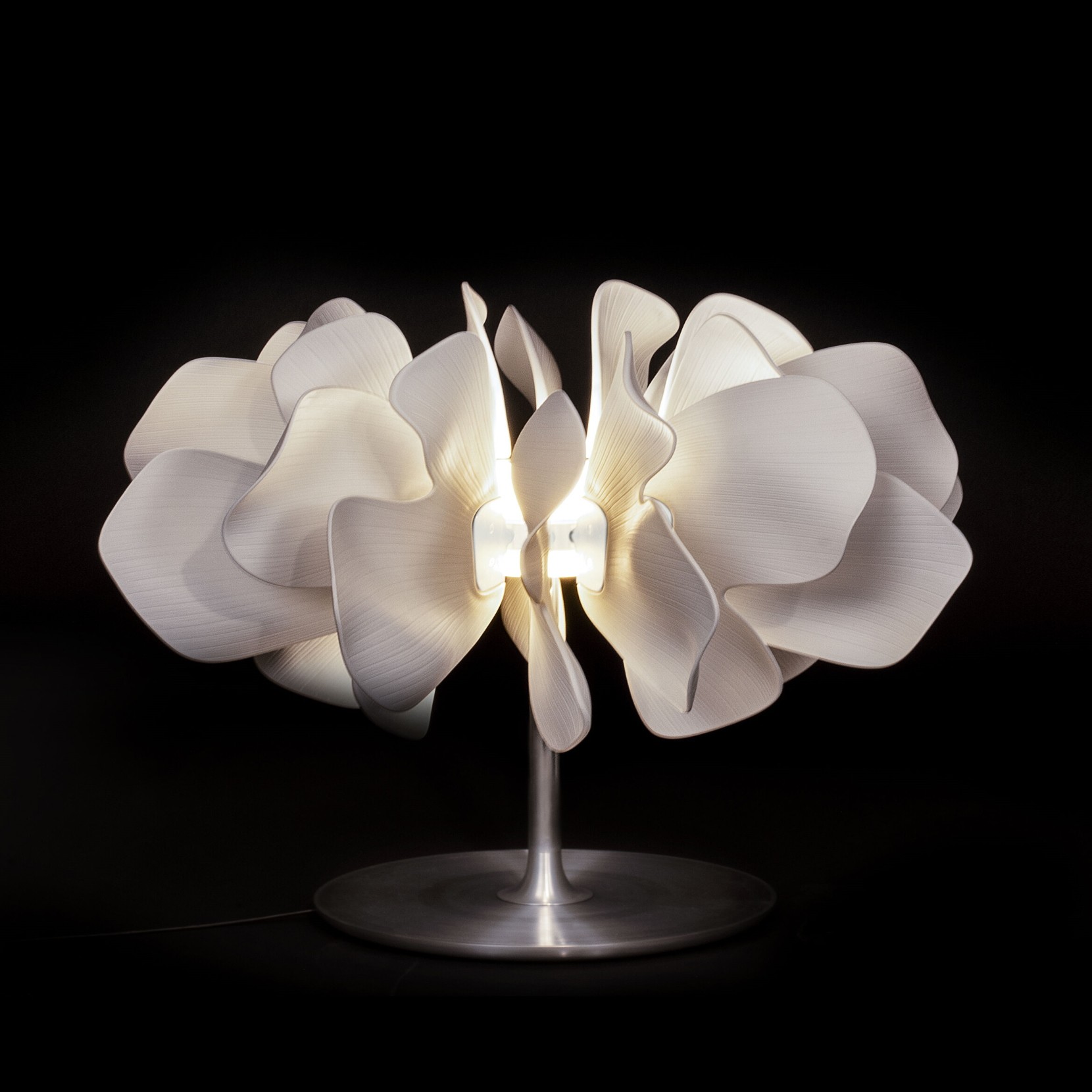 This work belongs to the collection of lighting accessories created by Marcel Wanders in collaboration with Lladró. A new and contemporary model that stands out for its organic and always dynamic shapes inspired by nature, but also for the fascinating effect produced on the petals by the light that is born inside. A work of great decorative potential, handmade in Spain.
