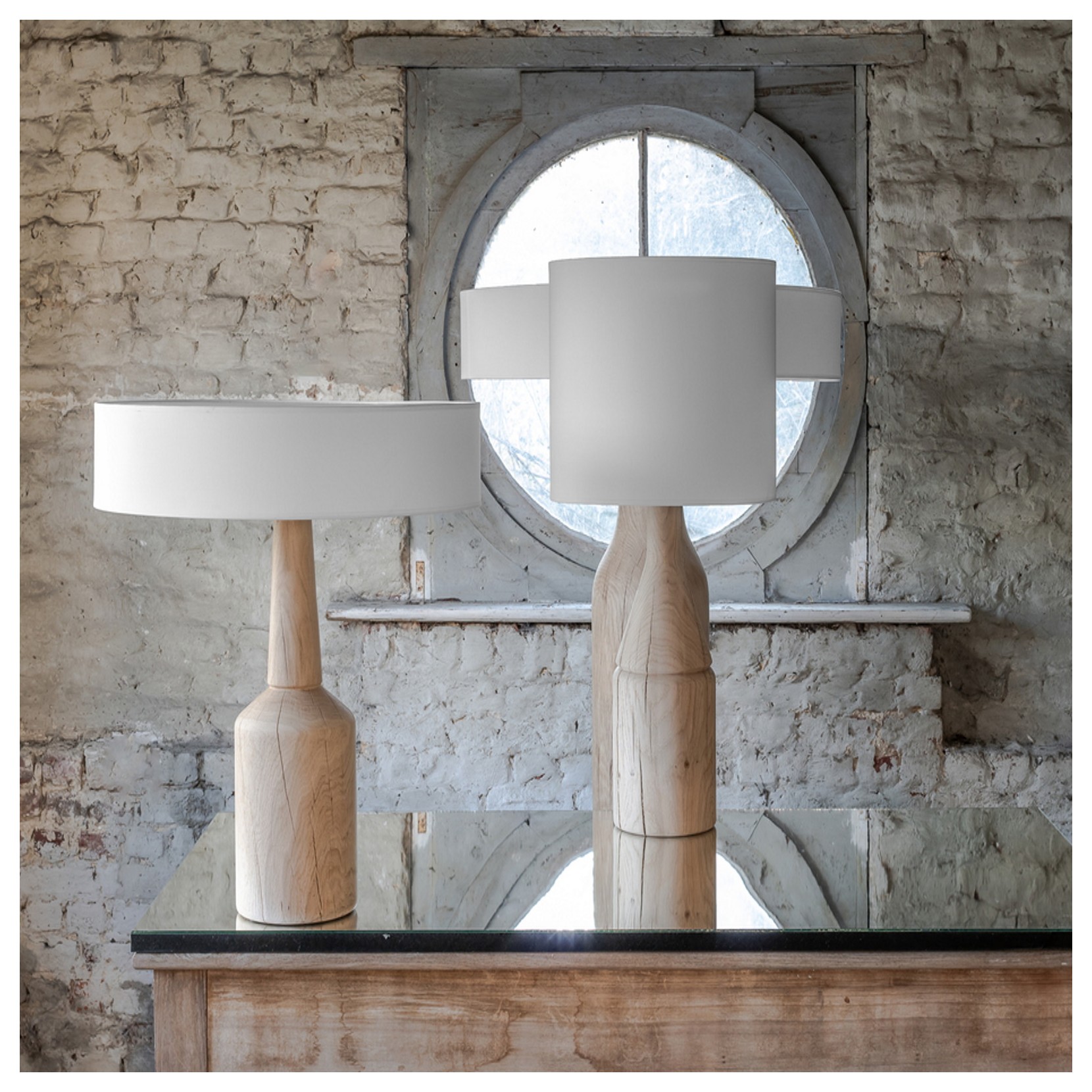 Hind Rabii proposes the table lamp Anna Belle. Anna Bella 3 is endowed with a rare, truly rare elegance. The fabrics are a white shaded by the material used and the crown expresses purity. The external and timeless material oak is the only support that suits her. Anna Belle 3 is inspired by glass bottles, which means that already alone the lamp acts as an ornament, with its bright and strong presence.