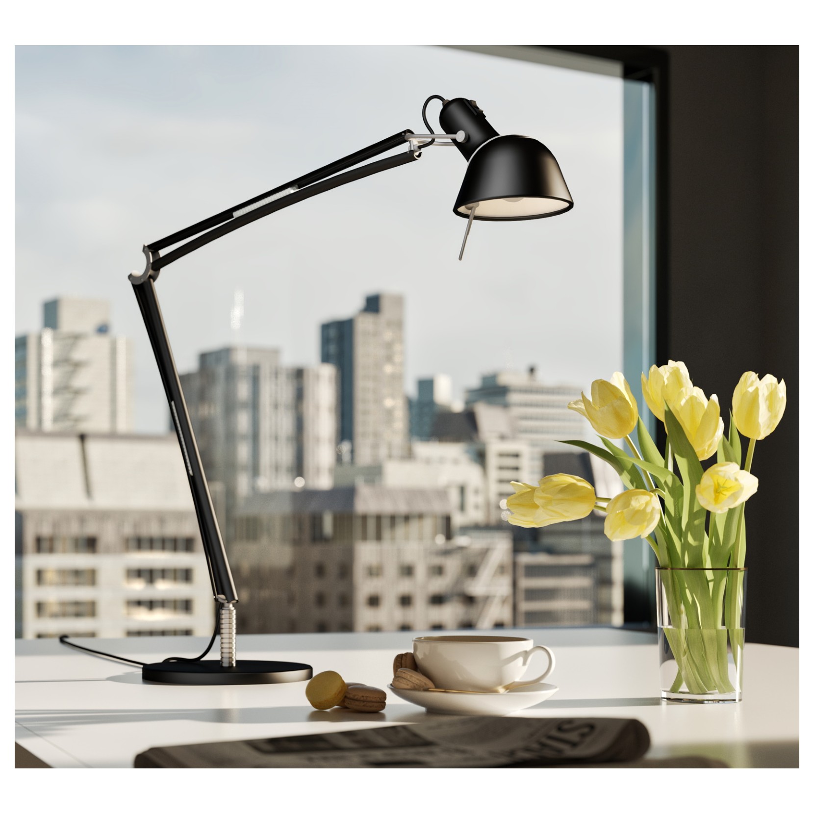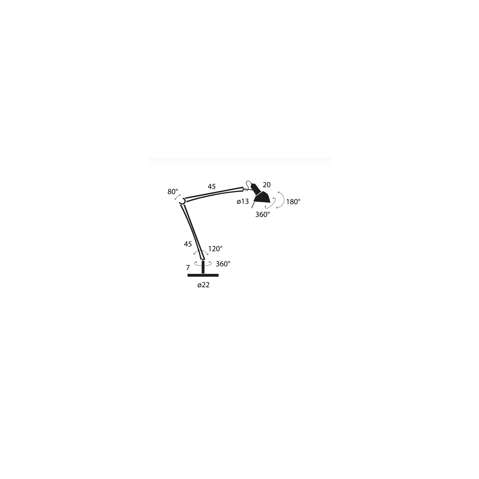 The table lamp NOEMI BODY represents the eesenza of modern design. The lamp consists of a metal structure with a reflector that rotates 360 º. In fact, the soft curves of the arm make this rotary movement possible.The strut can be combined with a round base or with other accessory elements such as clamp, wall mounting or junction connector.