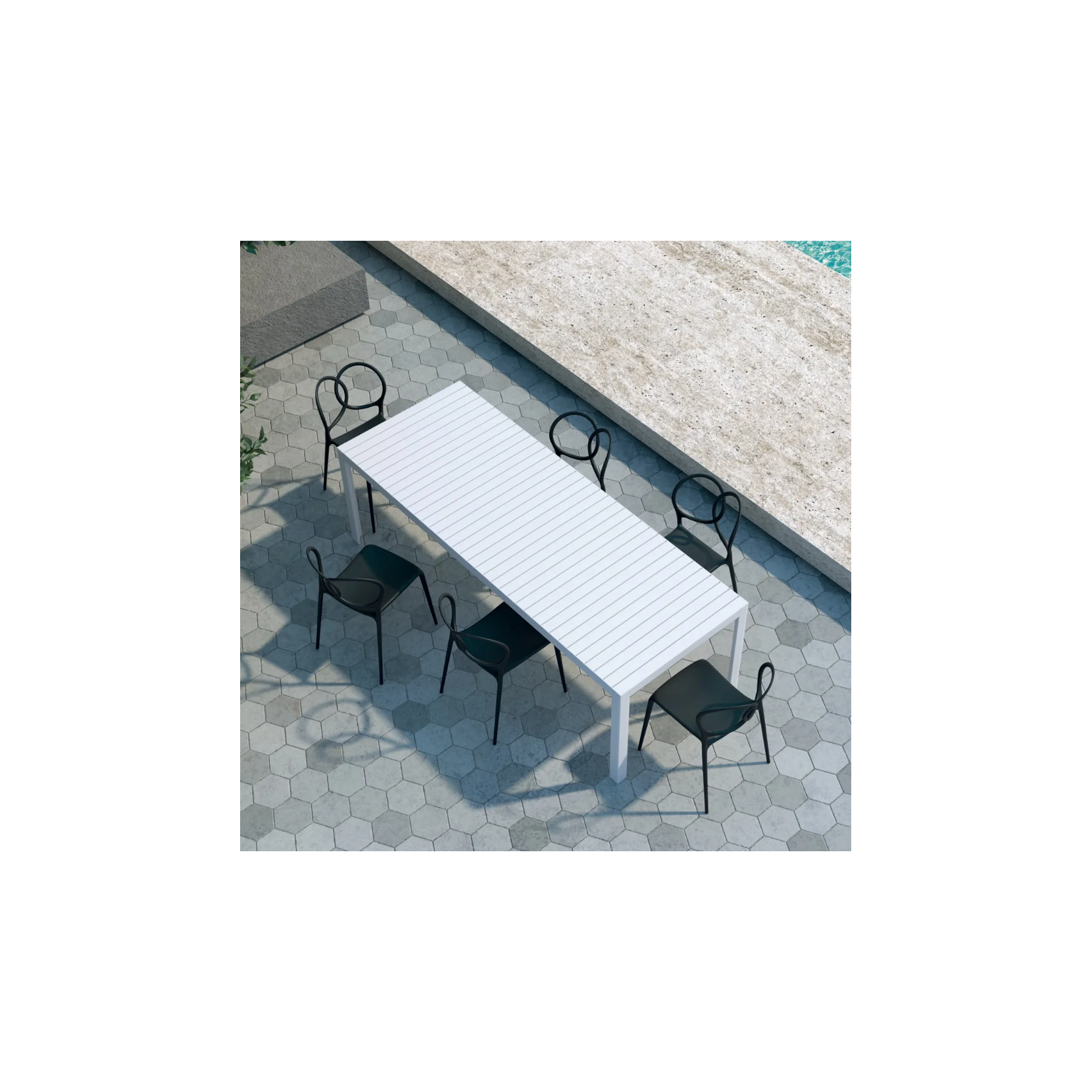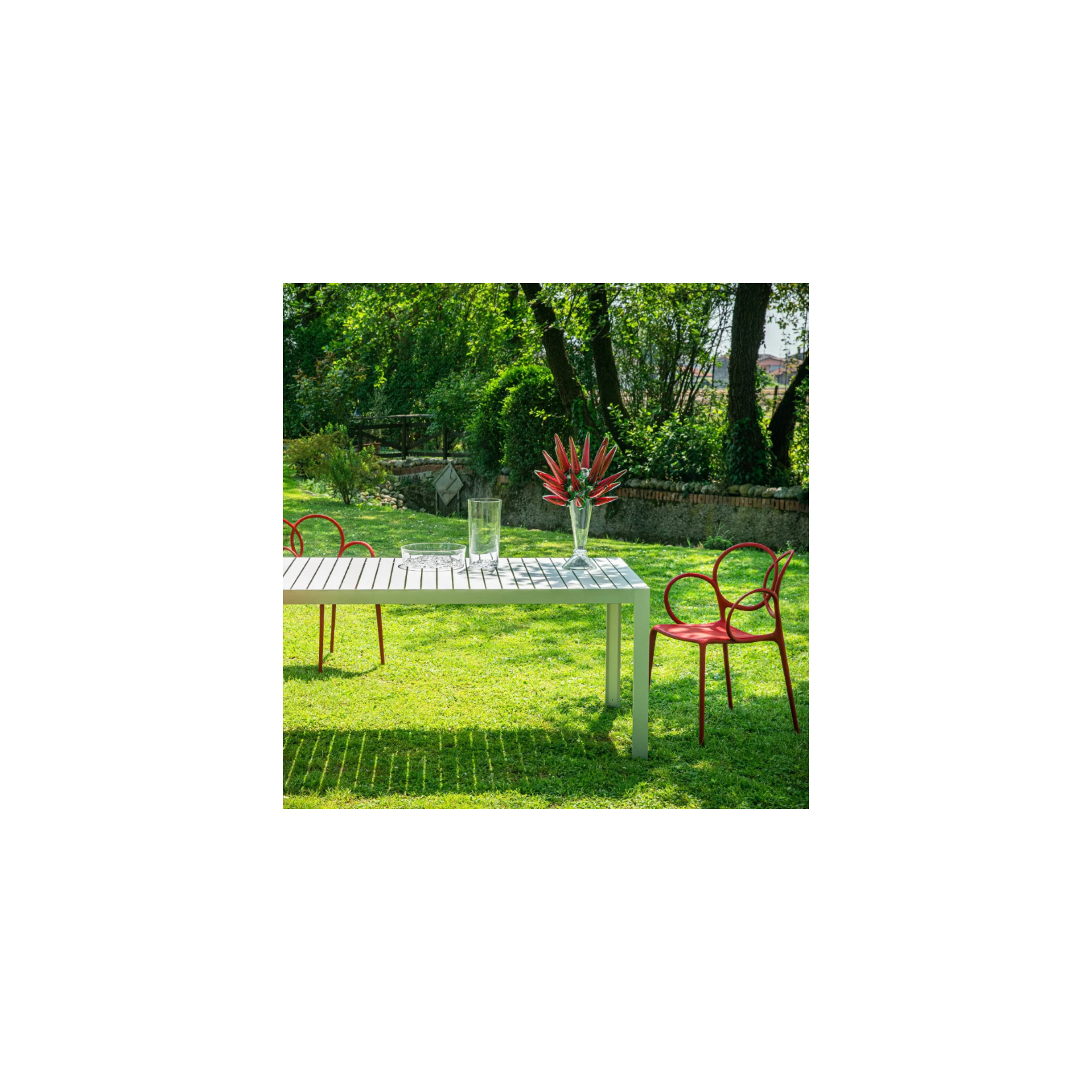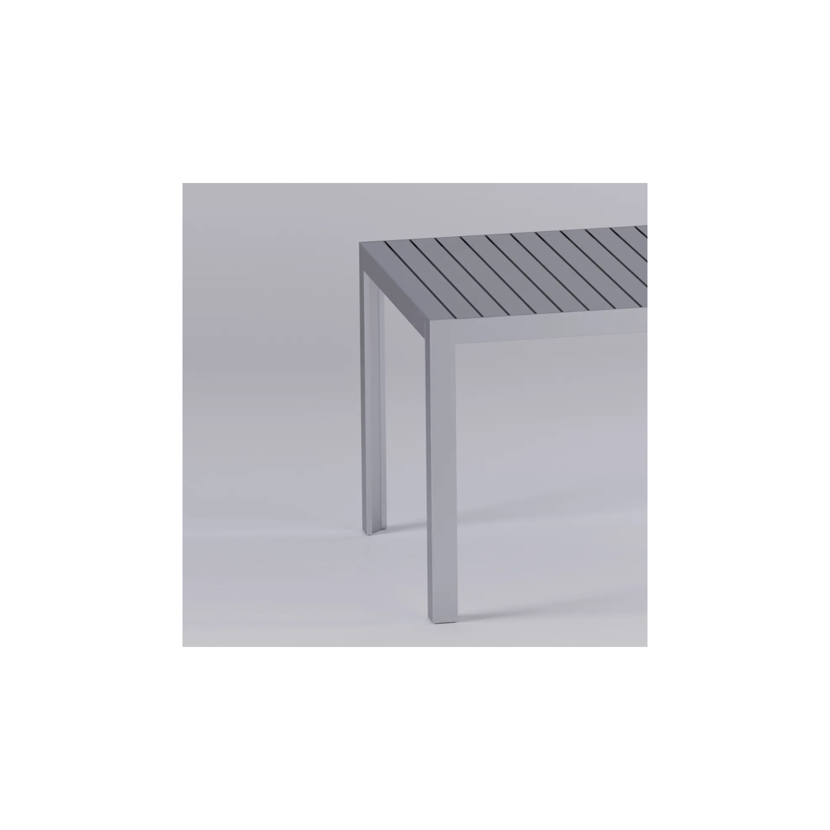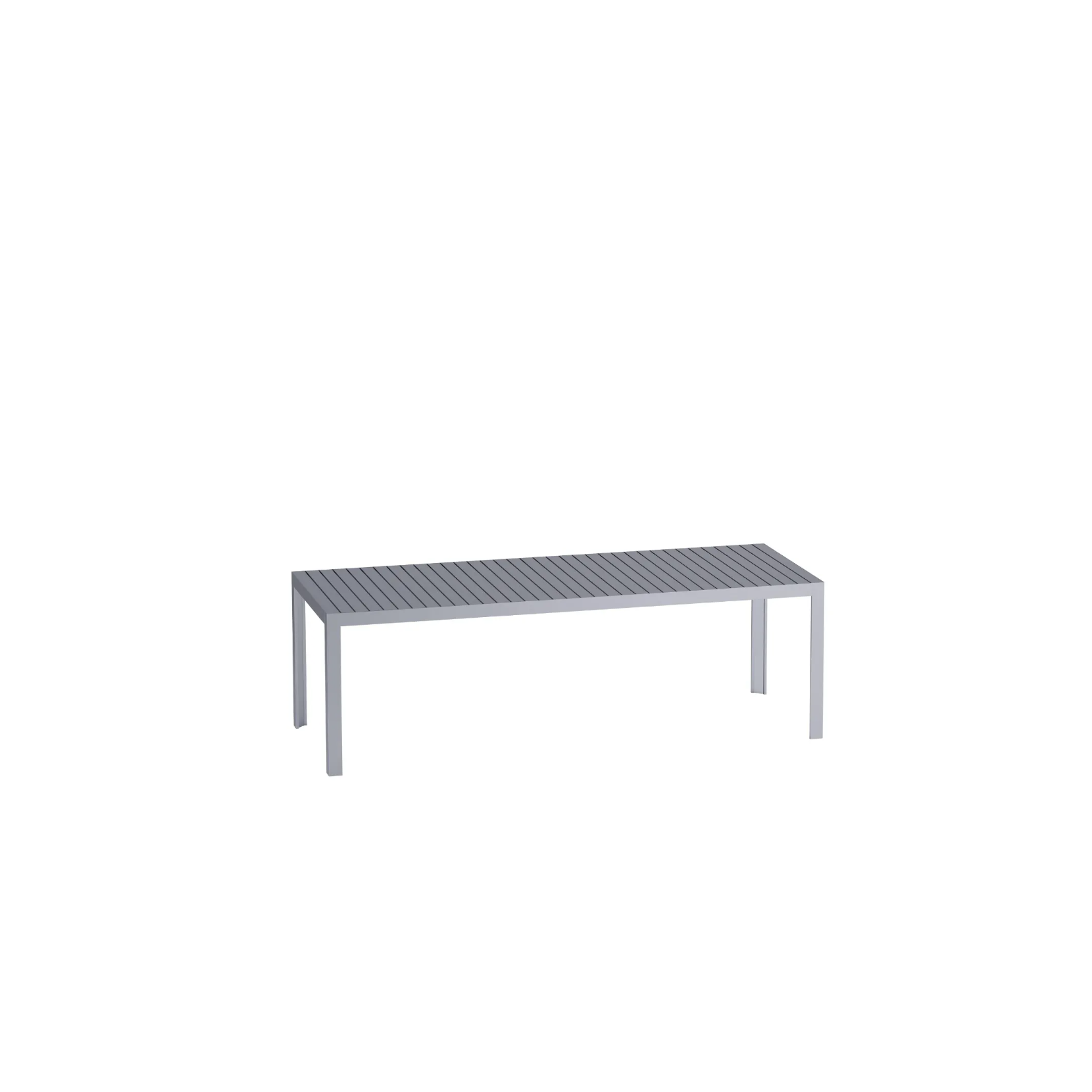 Kalimba is a table whose name is inspired by the ancient African percussion instrument. The top consists of slats that make it functional and minimal, an ideal piece of furniture for any environment. Made of extruded aluminum is also suitable for use in bathing areas given the resistance of this material to external agents such as iodine and salt.