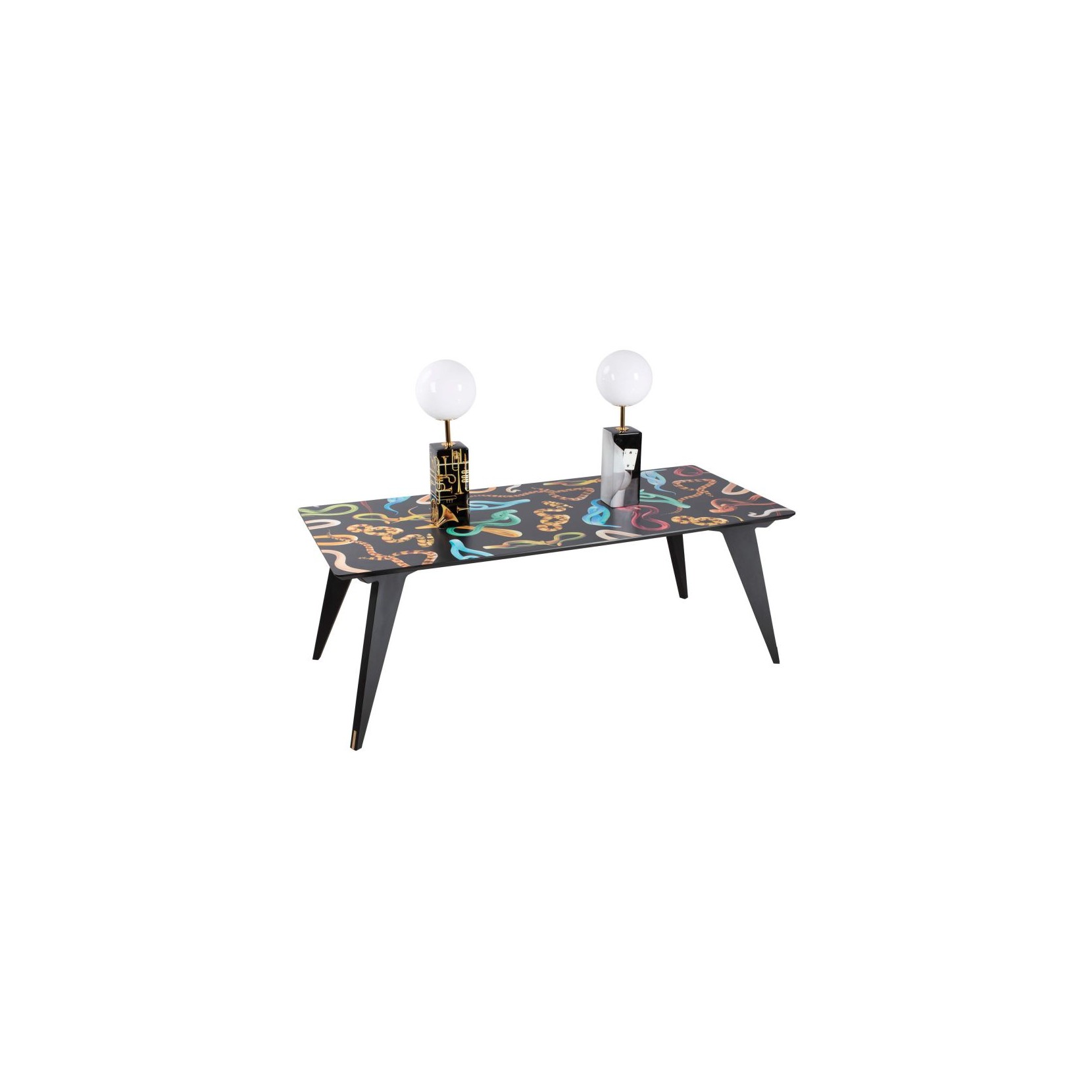 The table proposed by SELETTI in collaboration with the designer Toiletpaper recalls the clean and refined lines of the 70s with the addition of the Pop style.