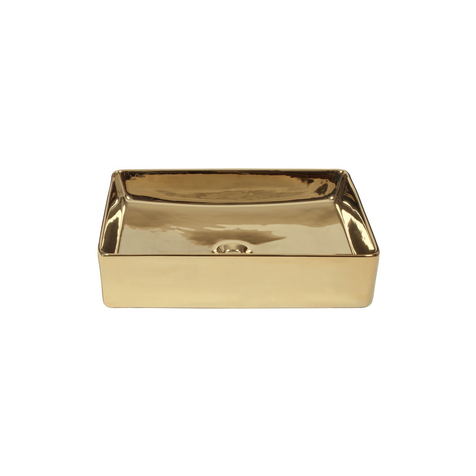 Contemporary rectangular washbasin with thin edges and metal surface finished in PVD. It is the perfect element to enhance any bathroom space, adding a touch of style and refinement.