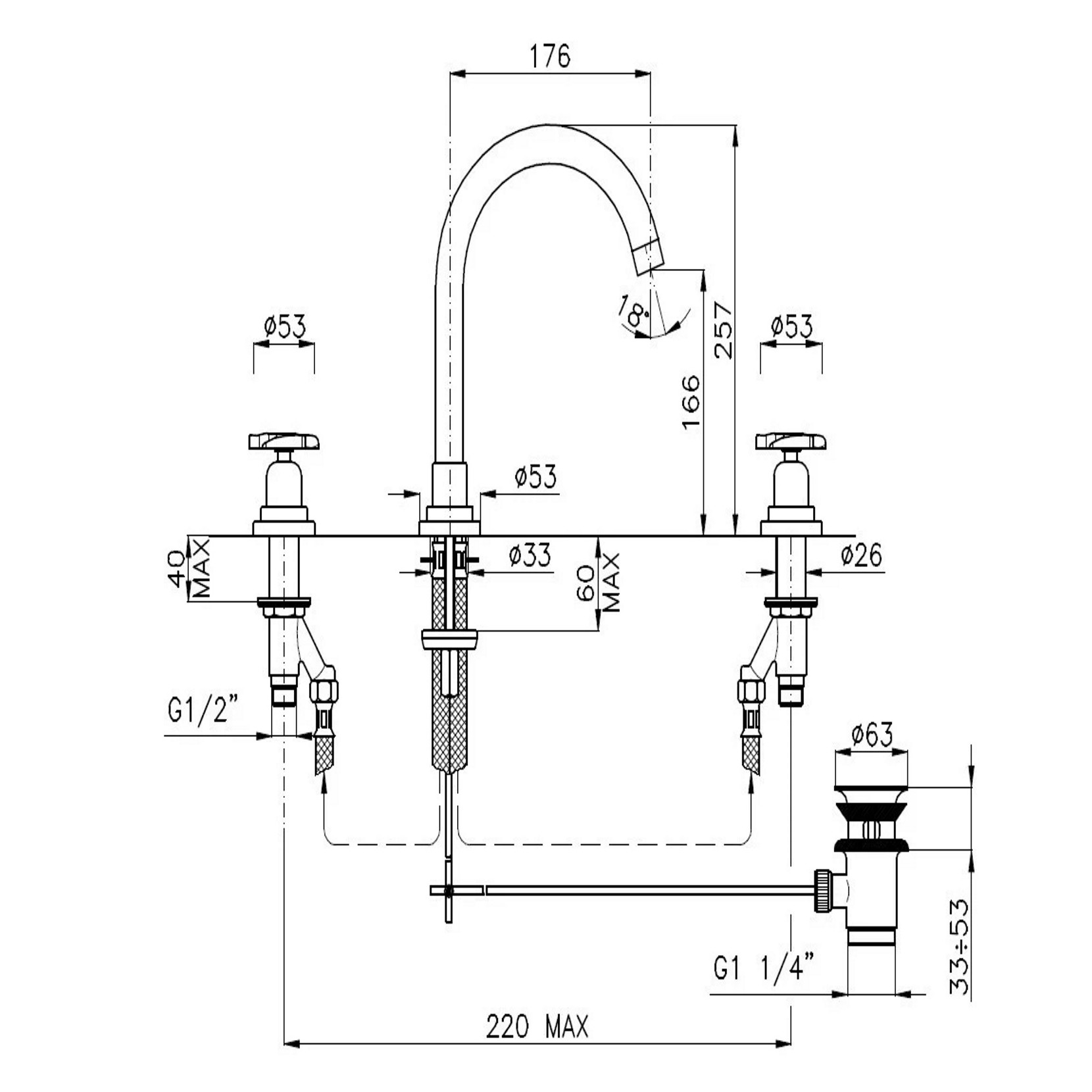 Posibilidad de tenerlo también en la versión con batería lavabo descarga automática (art.2208). Especifique la versión deseada en el pedido.