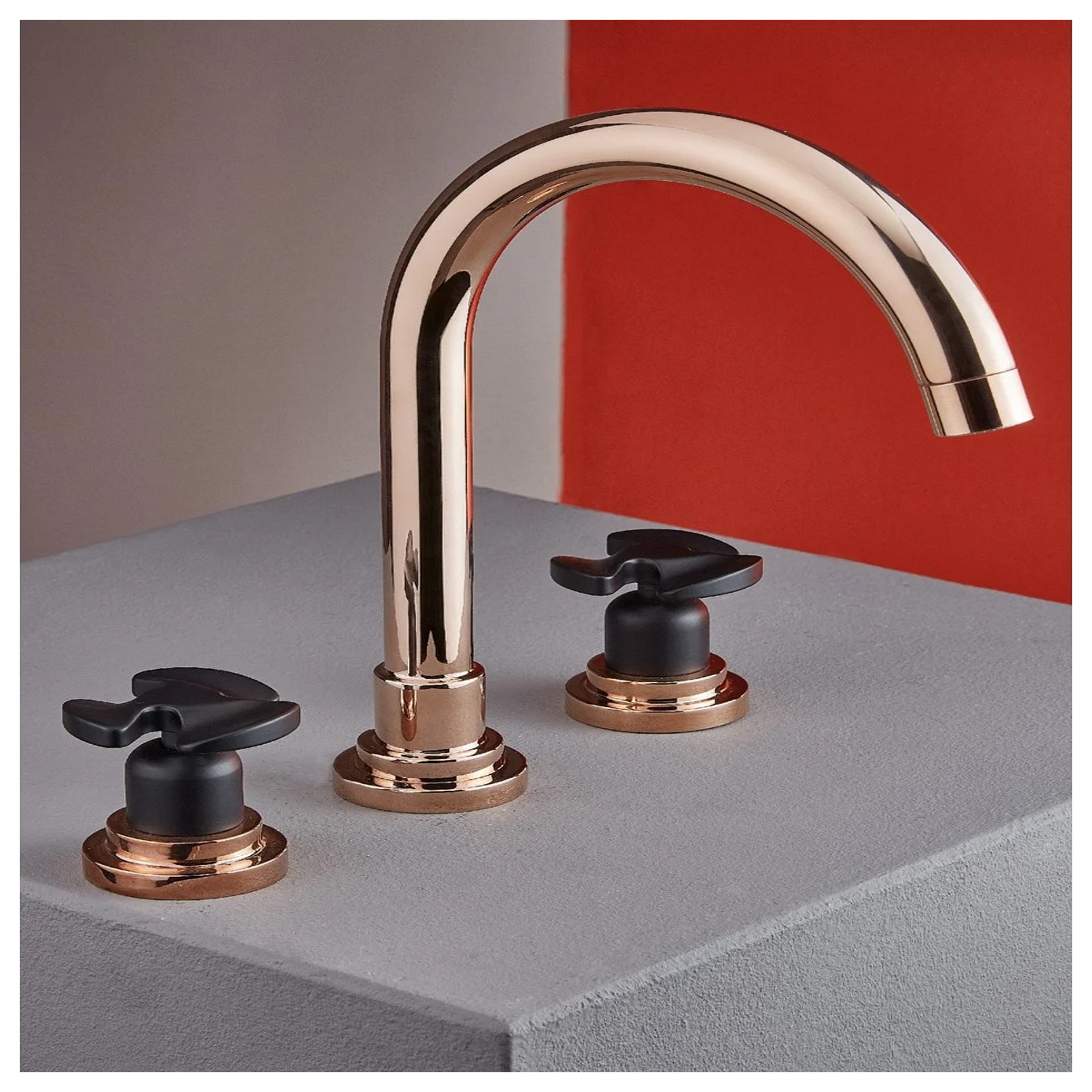 This faucet is suitable for luxury projects by the sea. Available in different color finishes. Its a brass drain-free washbasin battery with a ceramic viton.