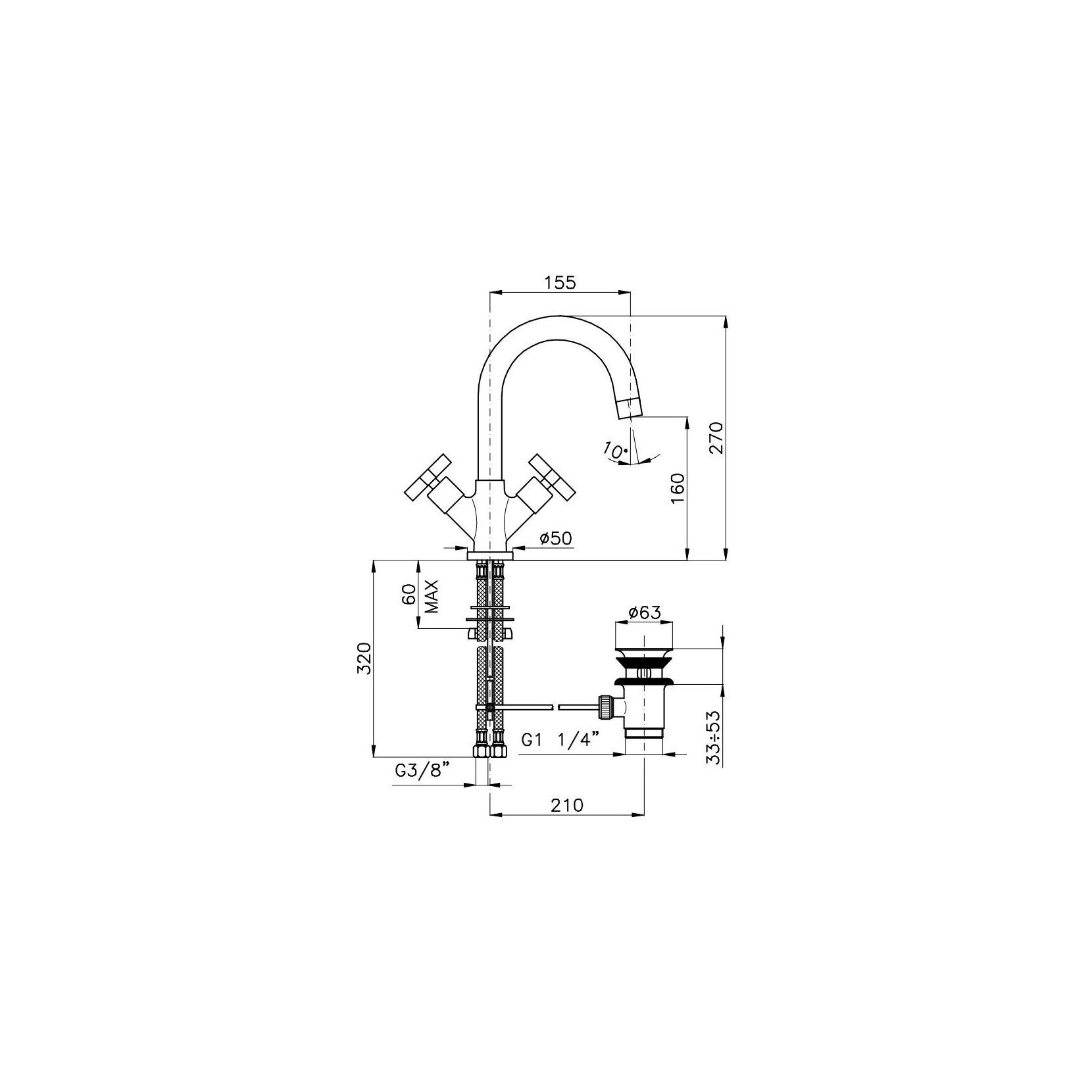 Officina Nicolazzi Monte Croce, Single hole automatic drain basin, swivel barrel