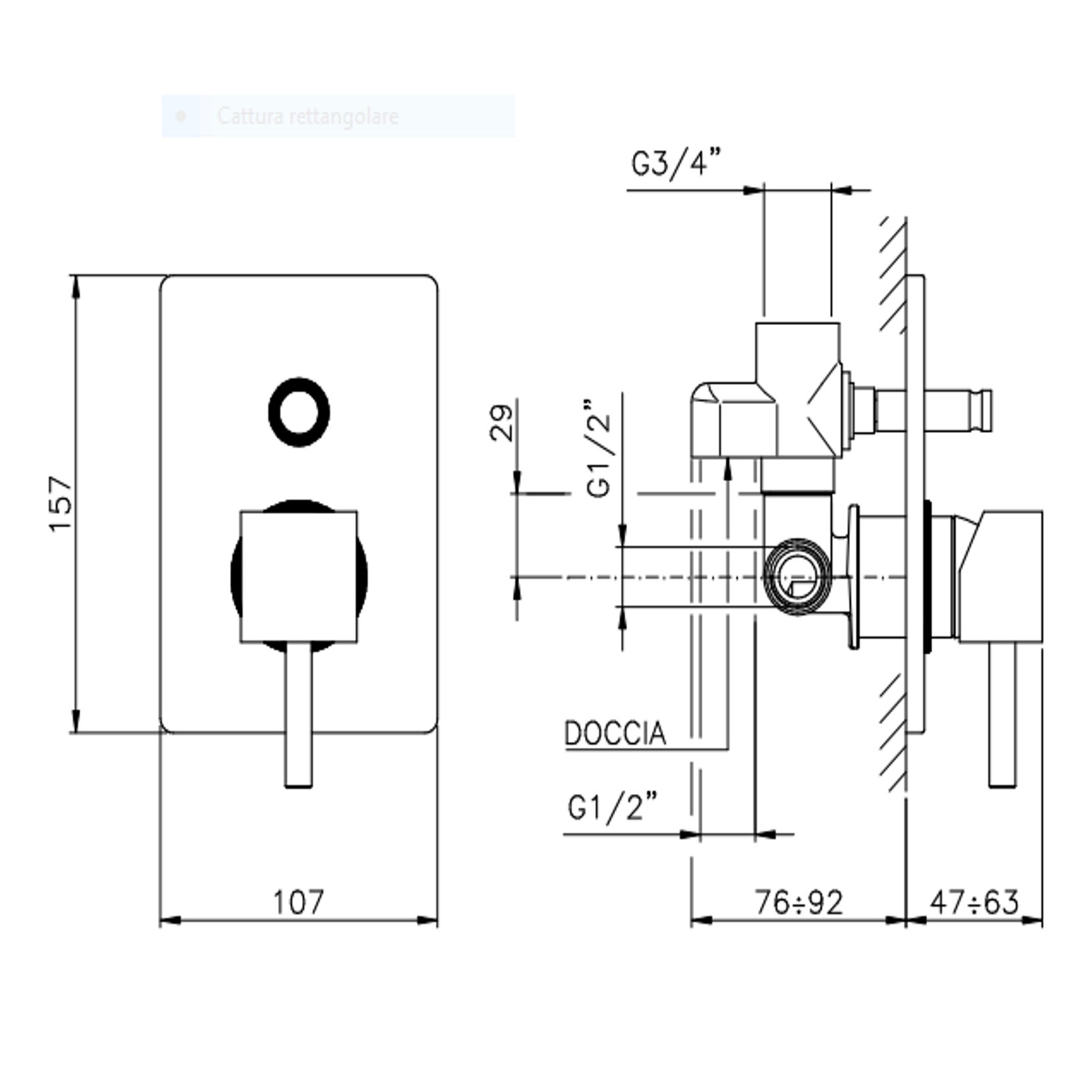 Officina Nicolazzi Monocomando Antelao, Built-in single-lever shower with diverter