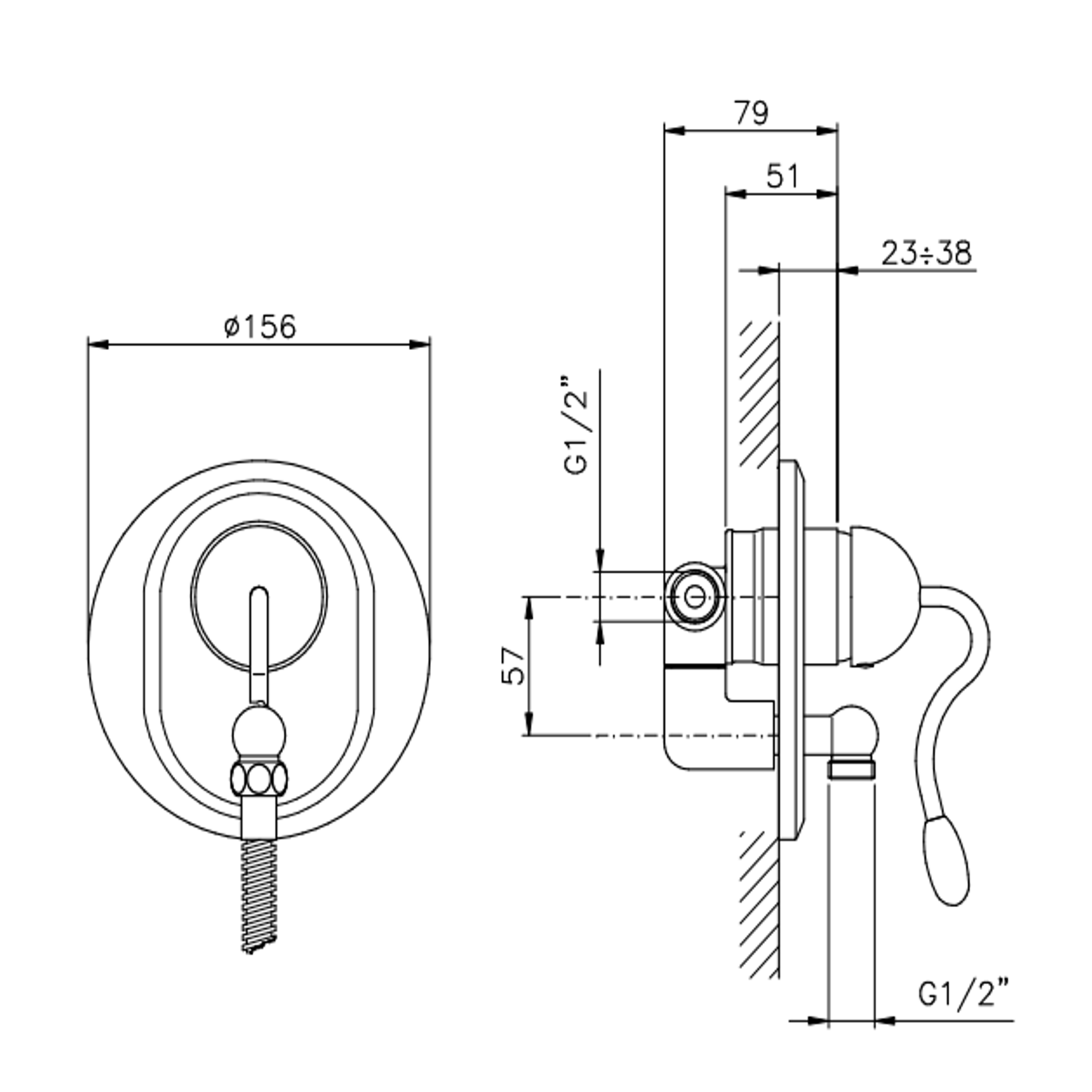 Officina Nicolazzi Monocomando Signal, Single-lever built-in shower "Unico"