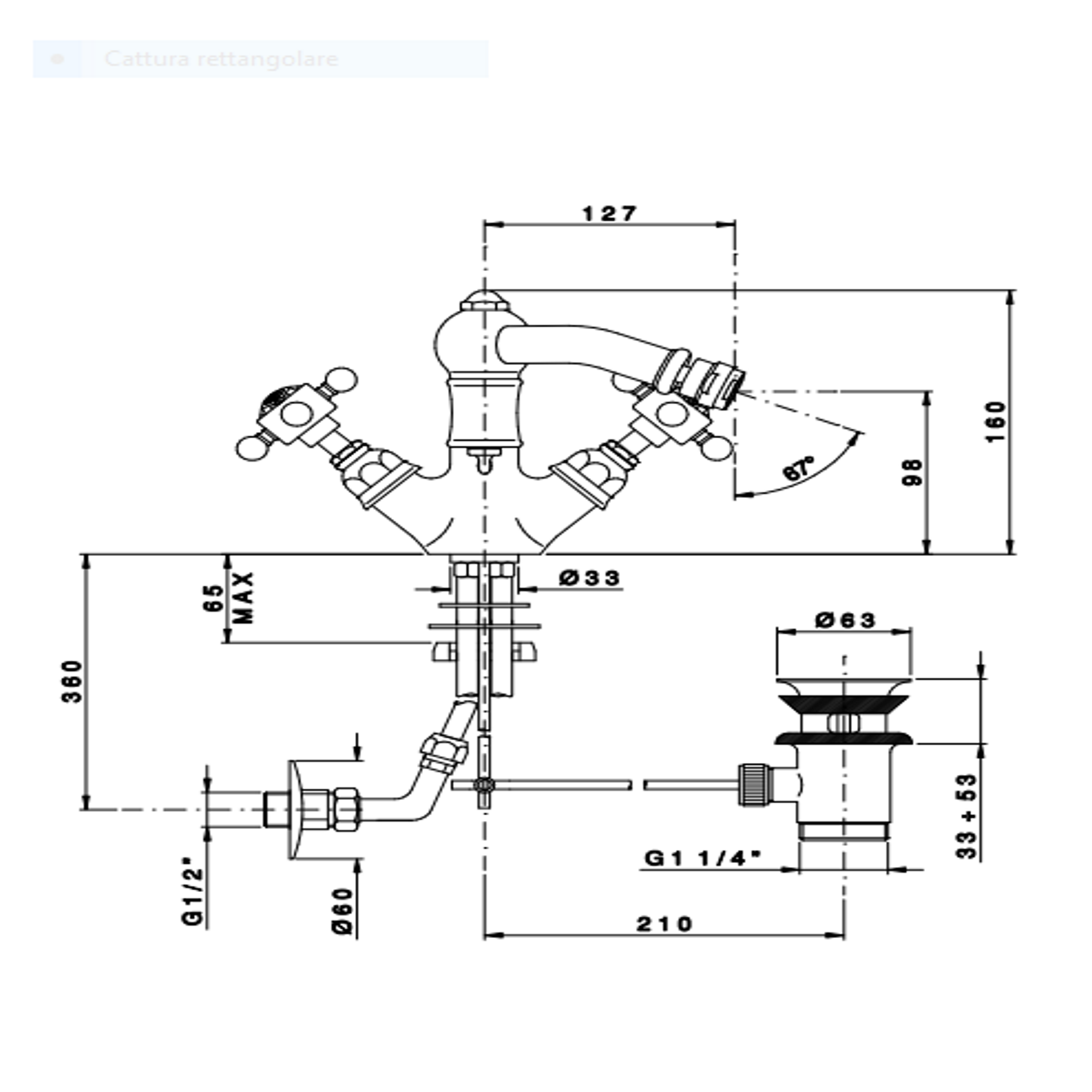 Available the version of the Monoforo bidet automatic drain, swivel barrel (art.1434**34)with handle Cristallo Liberty, the latter undergoes a price change. Specify at the time of order the version of the monohole desired.