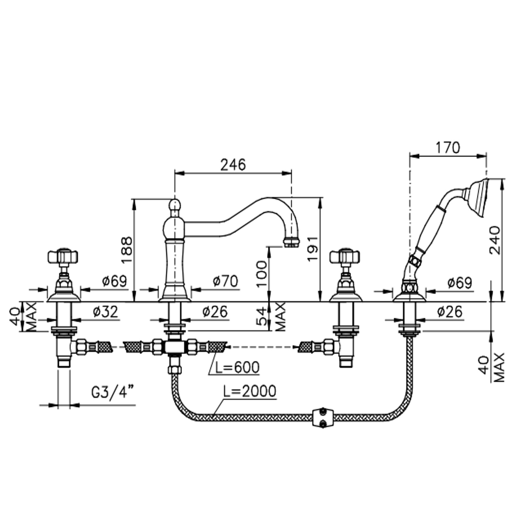 Officina Nicolazzi proposes the Traditional collection that is one of the most complete series, classic character but that does not go unnoticed. Different three hole and single hole washbasin solutions, with six different types of handles and levers. The series from a wide possibility of combination of materials, shapes and finishes, manages to match the different styles and personal tastes.