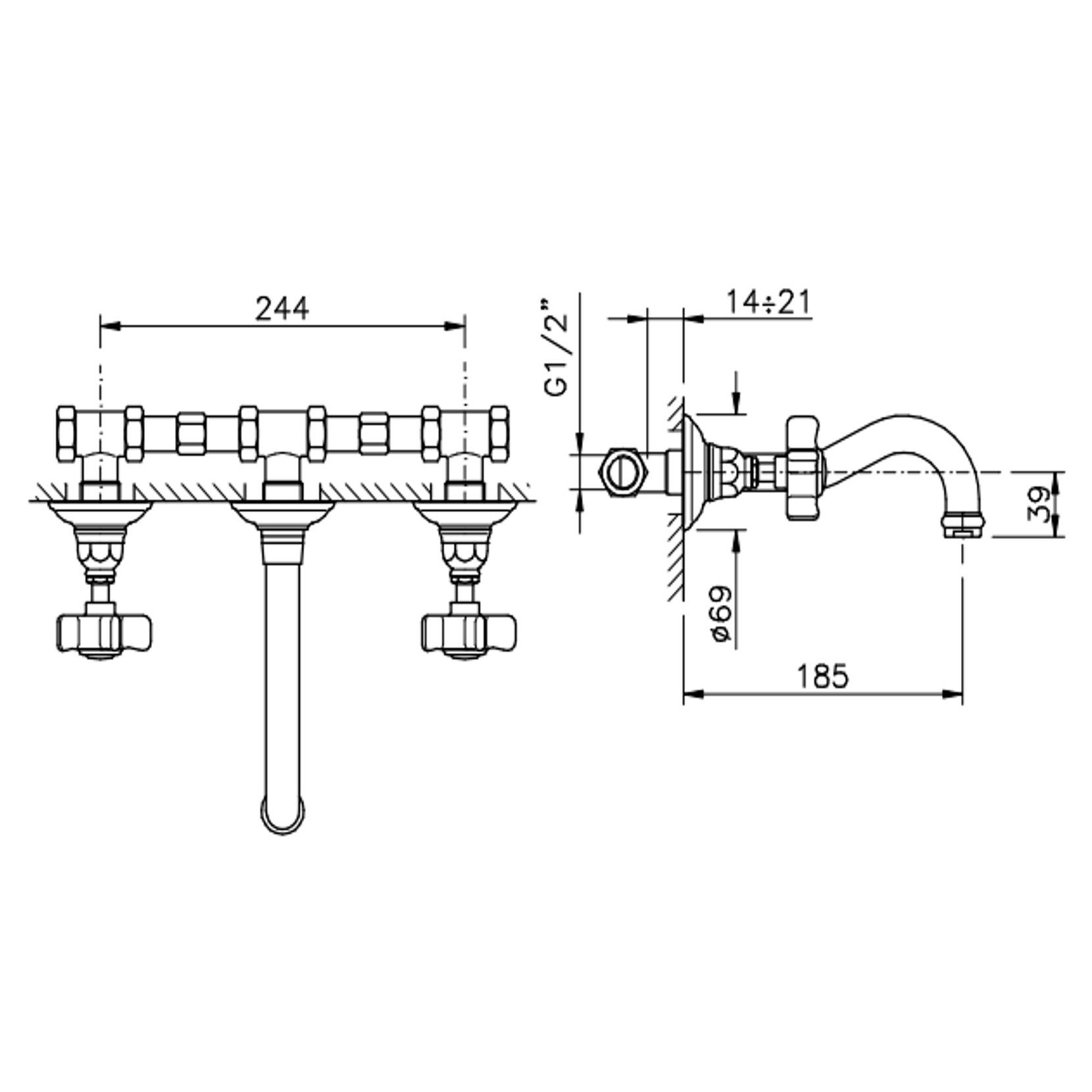 Officina Nicolazzi Tradizionale, Battery washbasin wall mounted