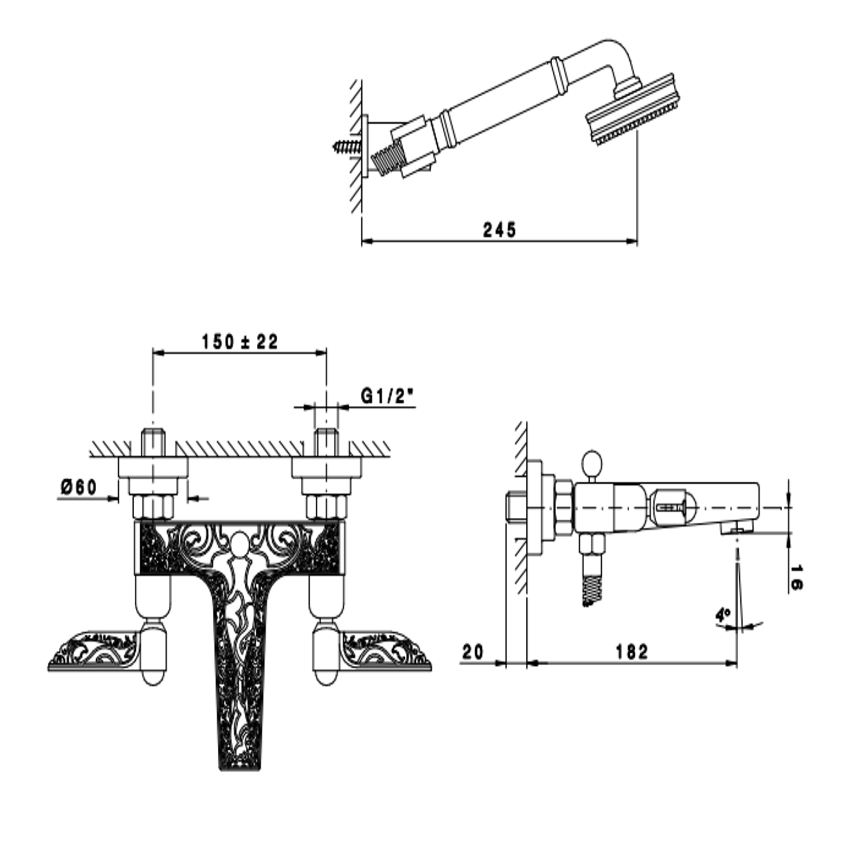 Officina Nicolazzi Monocomando Classico, Built-in single-lever shower door