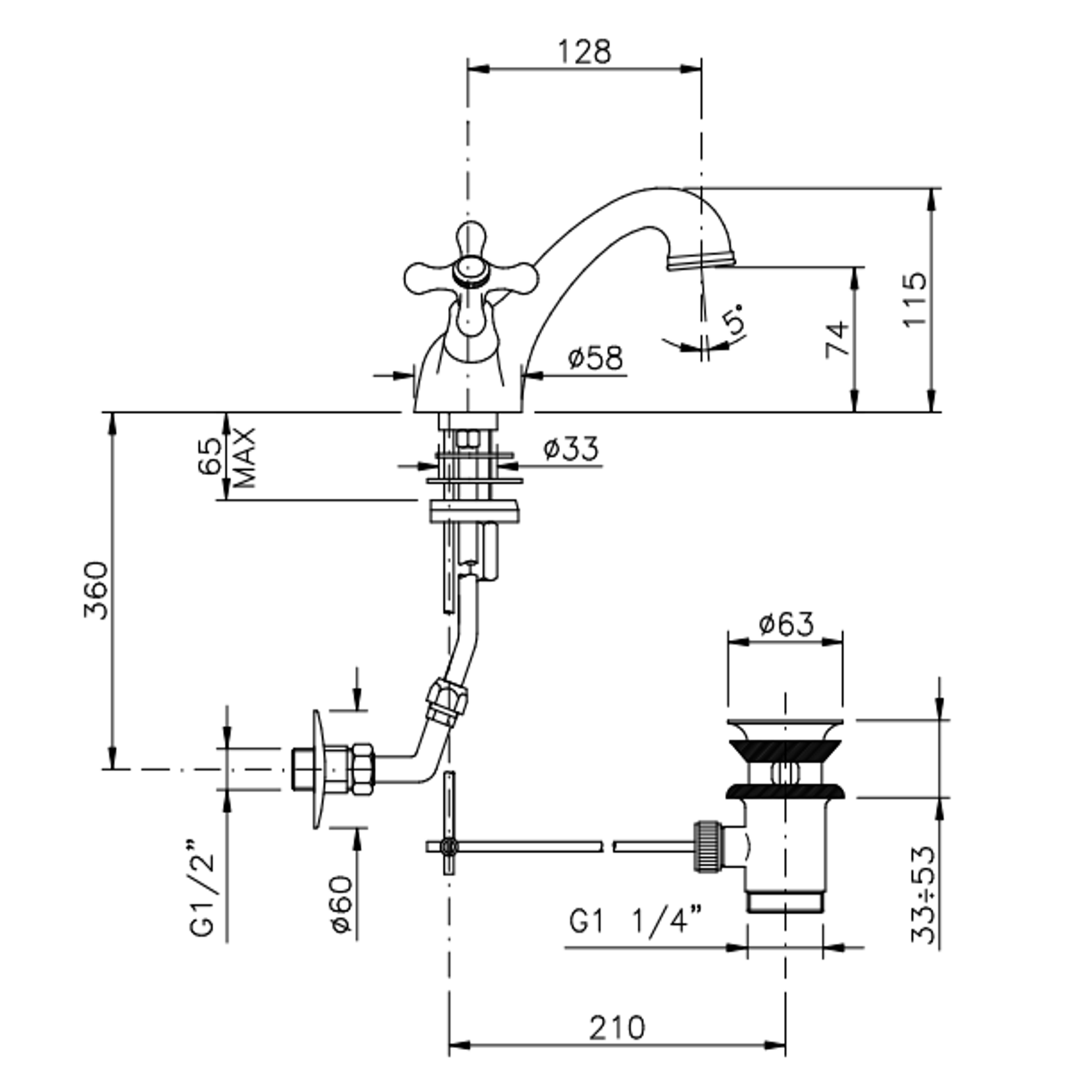 Officina Nicolazzi Nuova Brenta, Single hole automatic discharge washbasin