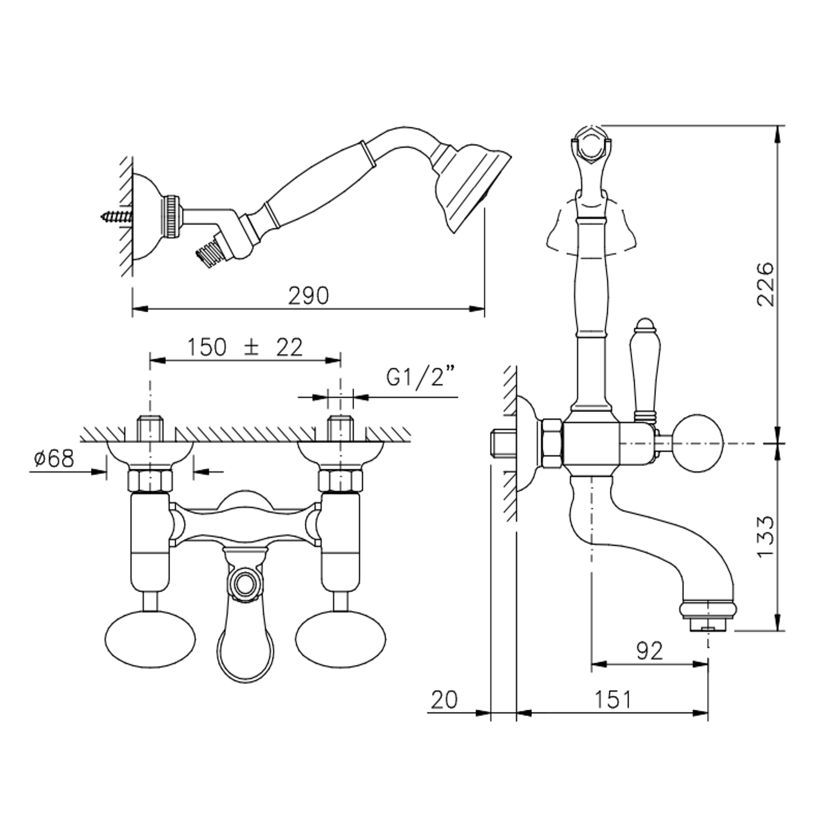 Officina Nicolazzi Cristallo di Rocca, Bathtub group with outdoor shower duplex