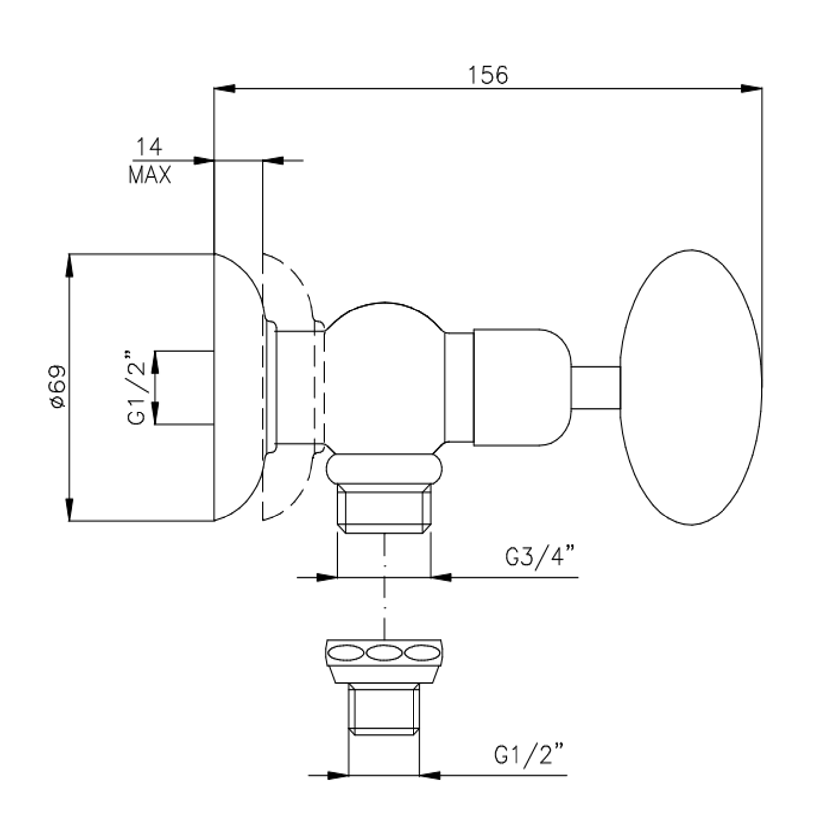 Officina Nicolazzi Cristallo di Rocca, 3/4" washing machine tap with 1/2" connection