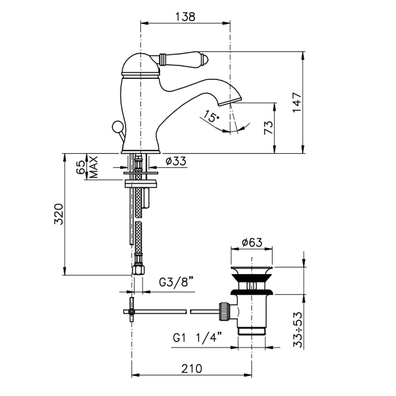 Officina Nicolazzi Monocomando Classico, Single lever for washbasin with automatic skid