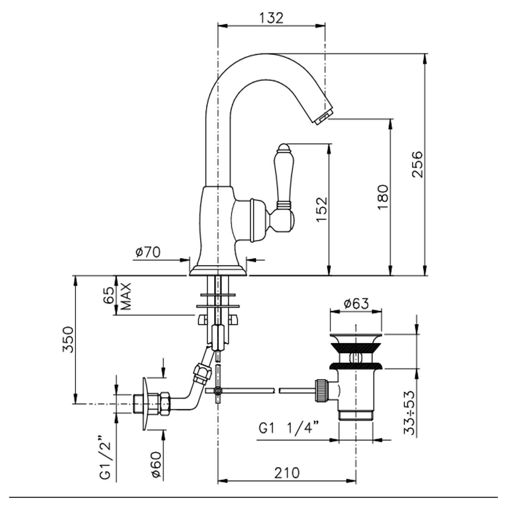 Officina Nicolazzi Monocomando Classico, Single lever for washbasin with automatic drain