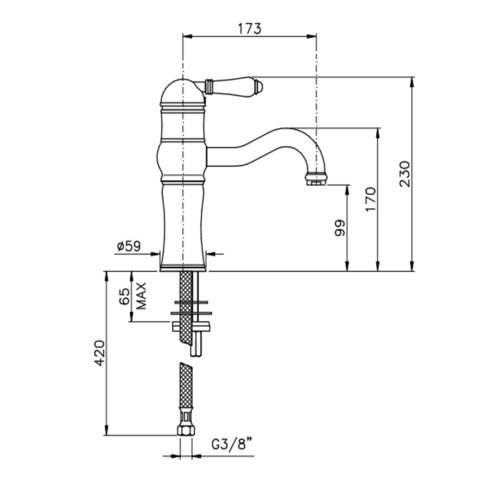 Officina Nicolazzi Monocomando Classico, Single lever high washbasin