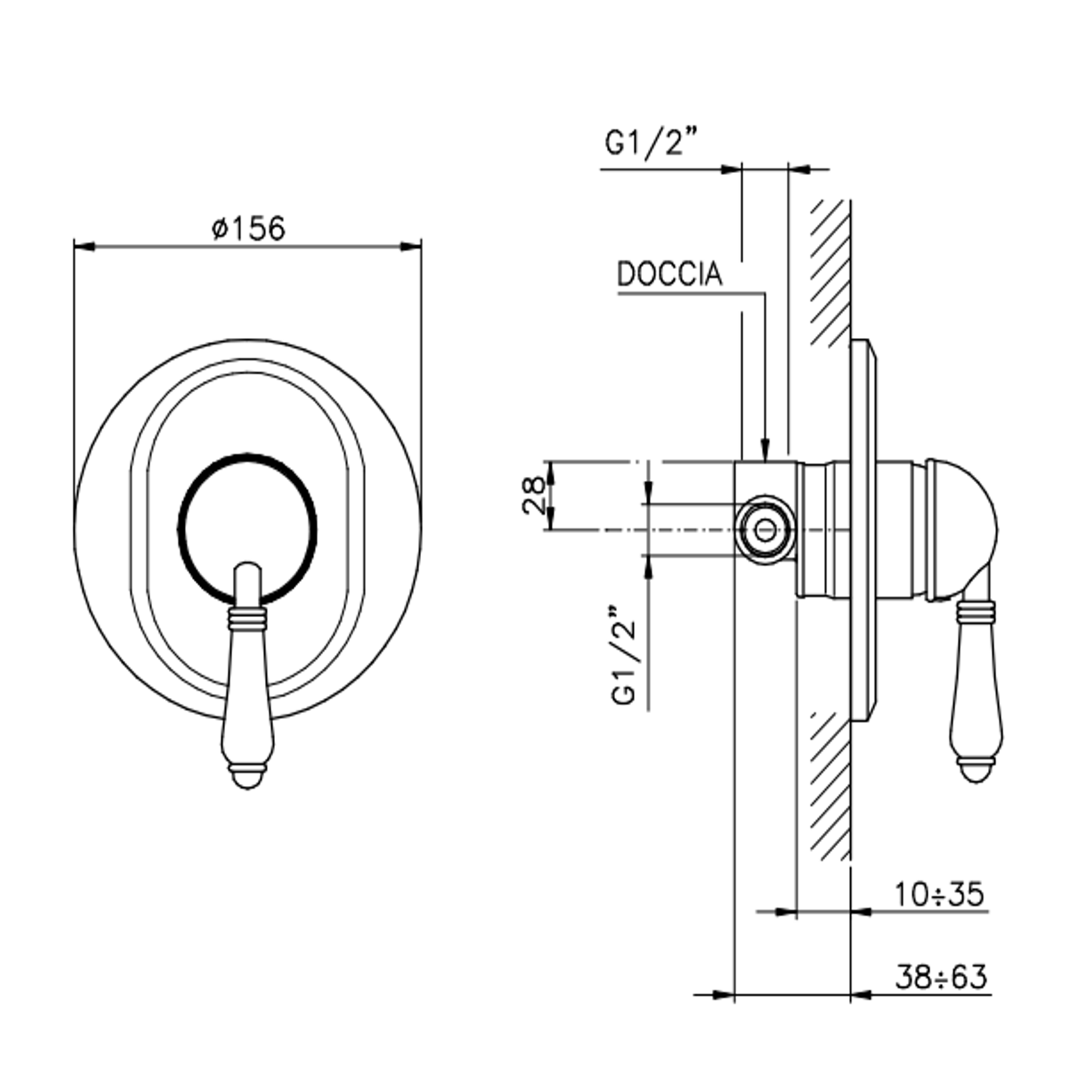 Officina Nicolazzi Monocomando Classico, Built-in single-lever shower door