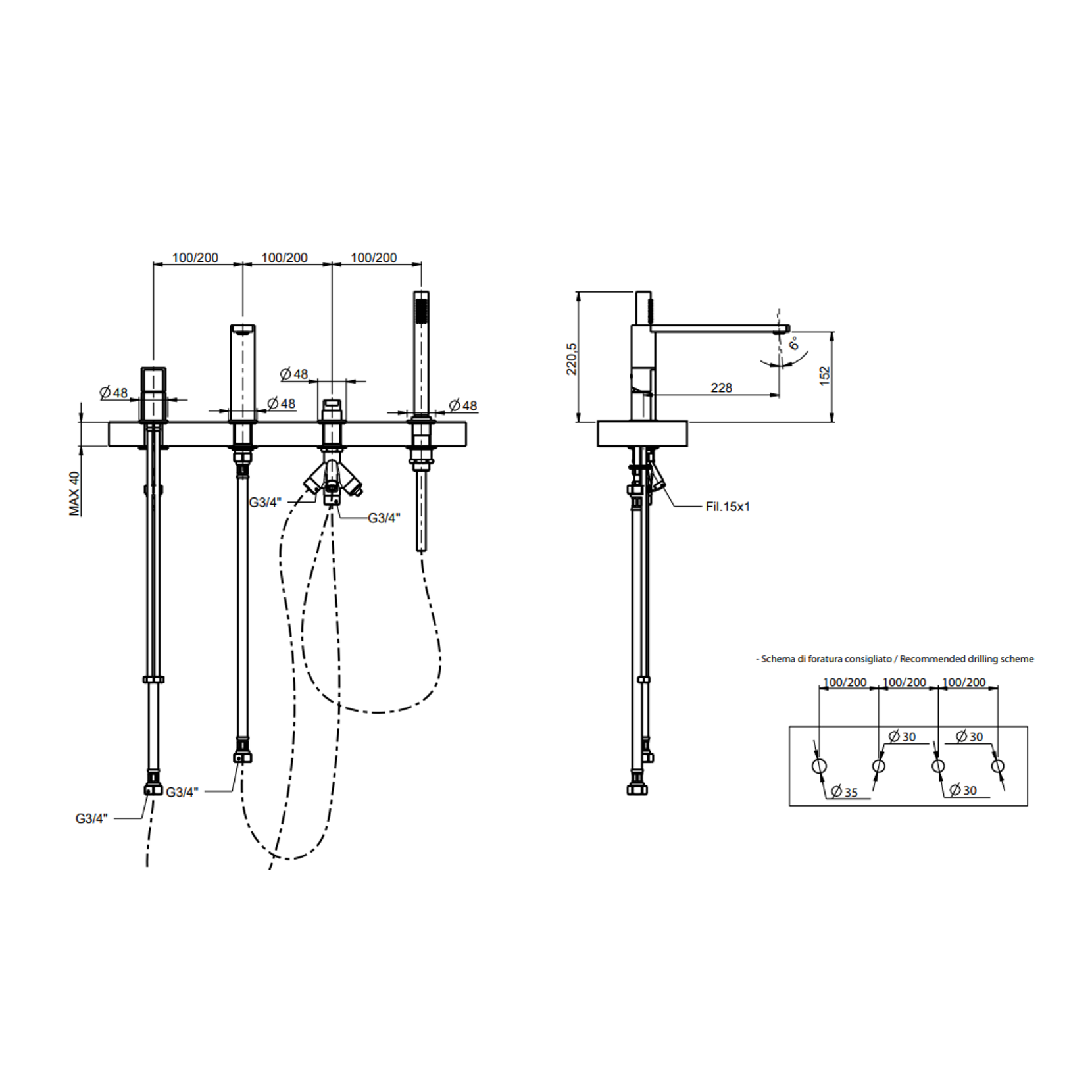 F.lli Frattini propose the Borgia 316 Inox series. Battery for single-lever mouth tub edge with diverter and removable shower. Borgia is made of 316 stainless steel to increase the characteristics of strength, solidity and durability. The clean lines adapt to the modern environment with a strong taste for contemporary design.