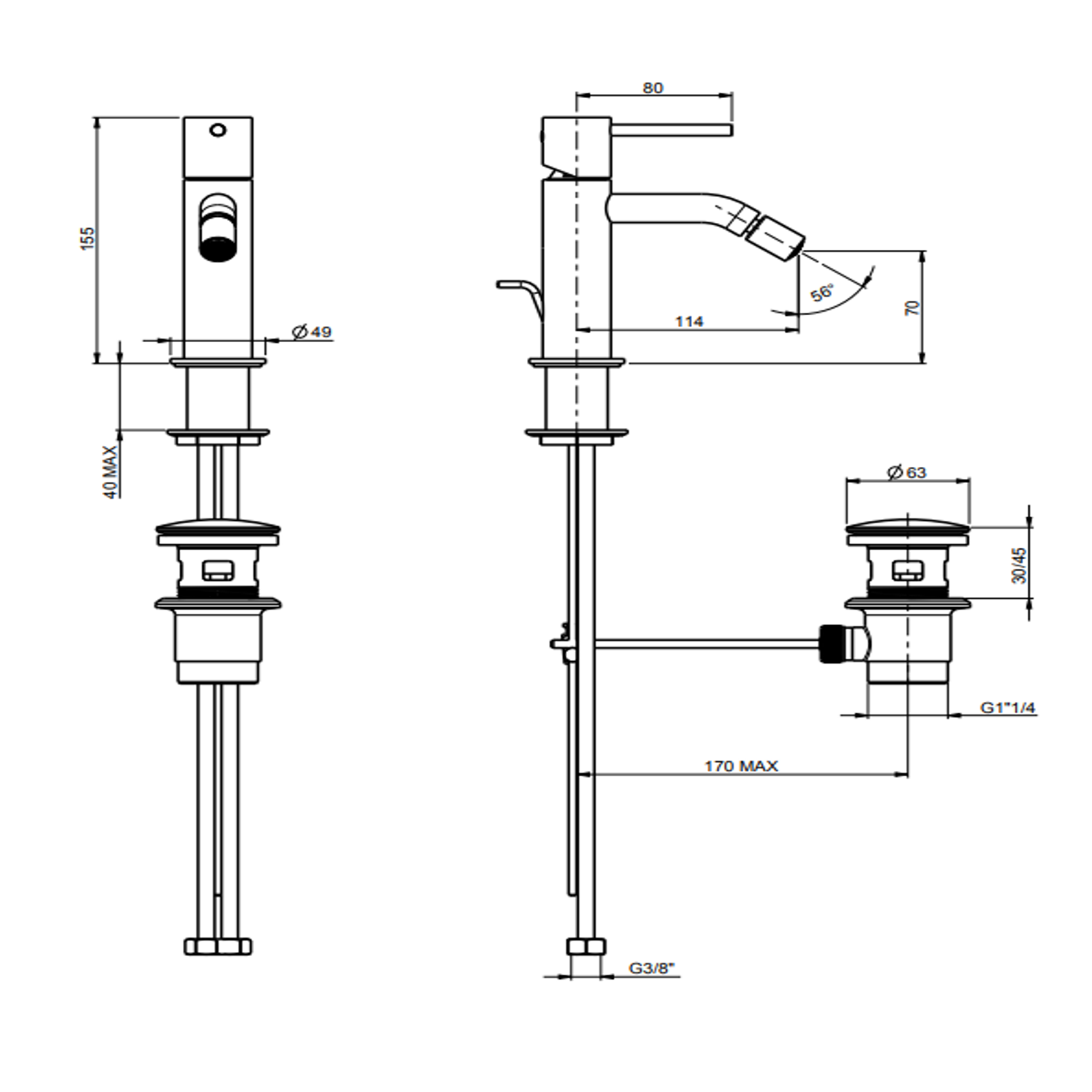 F.lli Frattini proposes the Pepe XL 316 Inox series. Monocomando for bidet with 1'1/4 drain. Pepe XL 316 Inox is made of 316 stainless steel to increase the characteristics of strength, solidity and durability. Clean lines fit into any modern or contemporary environment. Pepe XL guarantees a water consumption of less than or equal to 6 lt/min. Available in three color finishes.