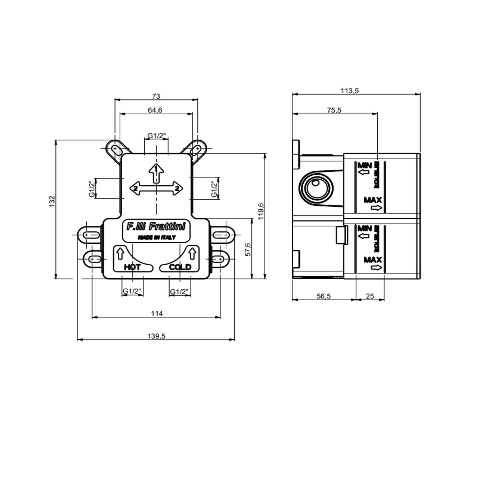 F.lli Frattini proposes the Pepe XL 316 Inox series. External visible single-lever recessed with diverter to ceramic discs 2 ways, body for single-lever built-in universal shower, cartridge ?35, 1/2 ways, with deviation to ceramic discs. Pepe XL 316 Inox is made of 316 stainless steel to increase the characteristics of strength, solidity and durability. Clean lines fit into any modern or contemporary environment.