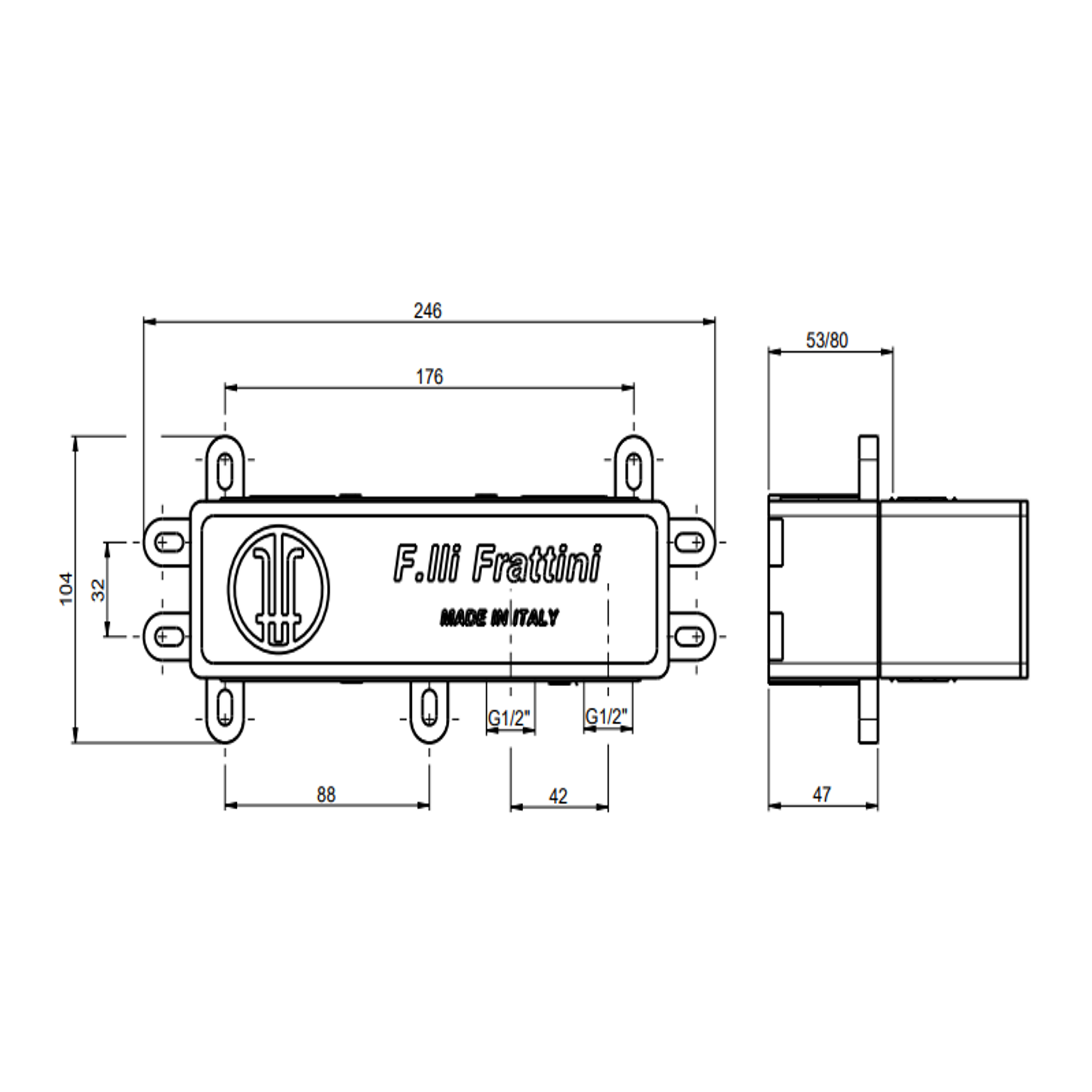 F.lli Frattini Pepe XL 316 Inox, Built-in single lever with diverter 2 ways