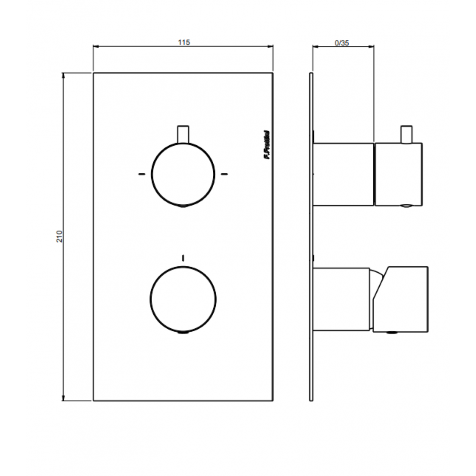 F.lli Frattini proposes the Narciso S series, external visible single-lever built-in with ceramic disc diverter 2-3 ways, brass plate, body for single-lever built-in universal shower, cartridge ?35, 2/3-way, with deviation to ceramic discs The series blends an elegant balance of shapes and spaces, punctuated by clean and rigorous geometric shapes. Available in different colours and knob finishes (art.90094).