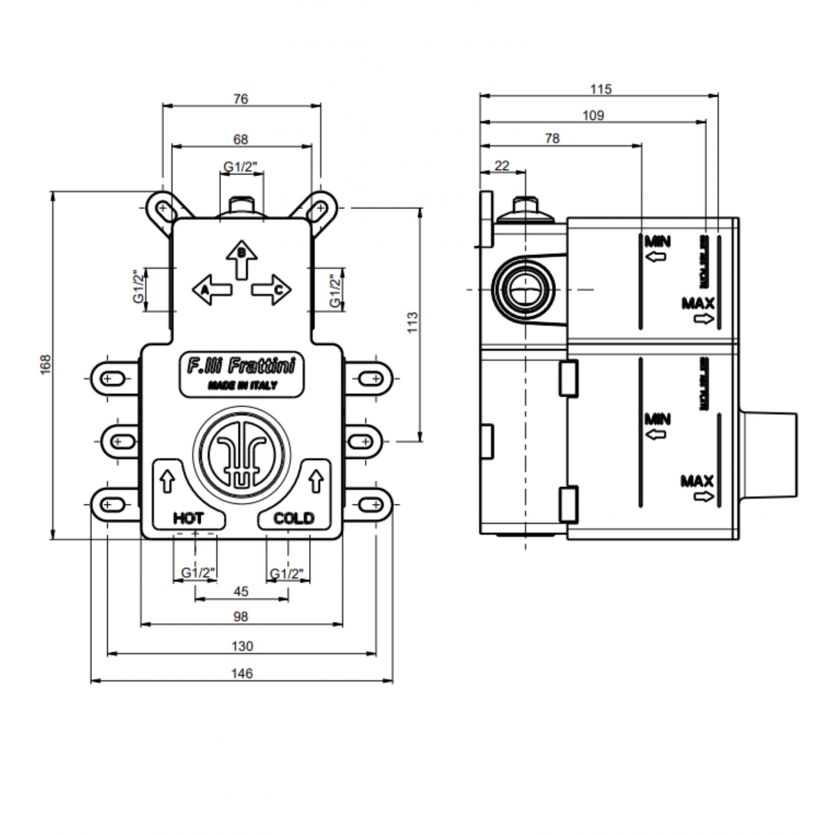 F.lli Frattini Narciso S, Built-in single lever with diverter 2-3 ways