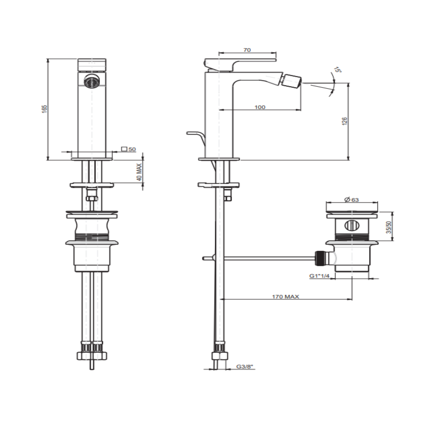 F.lli Frattini Vitadue, Single-lever bidet mixer with 1”1/4 pop-up waste