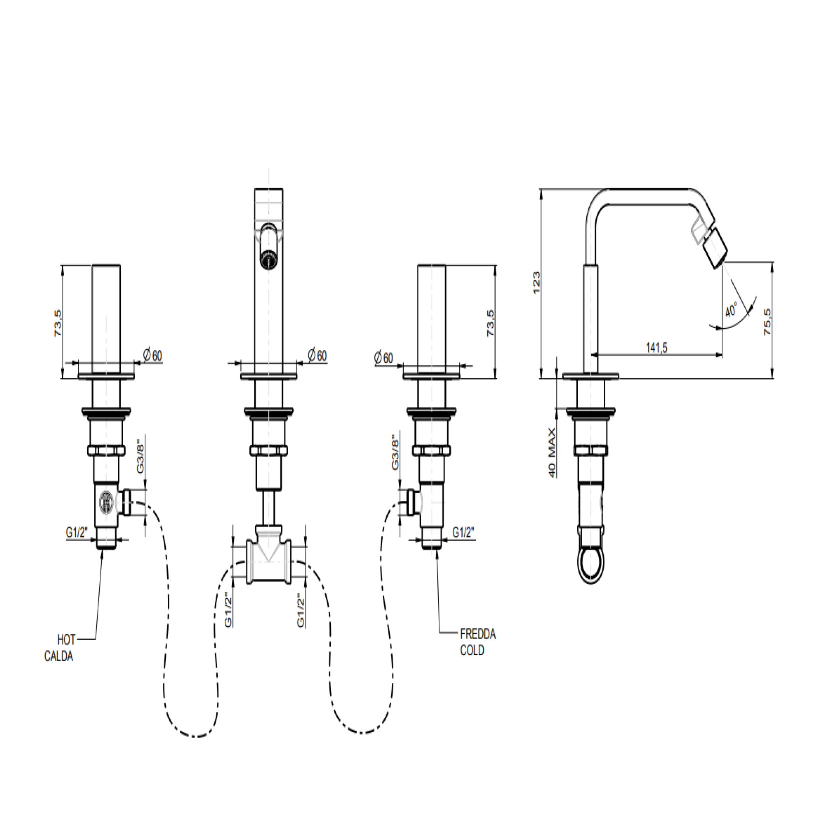 F.lli Frattini Vita M Style, Bidet battery with fixed high mouth