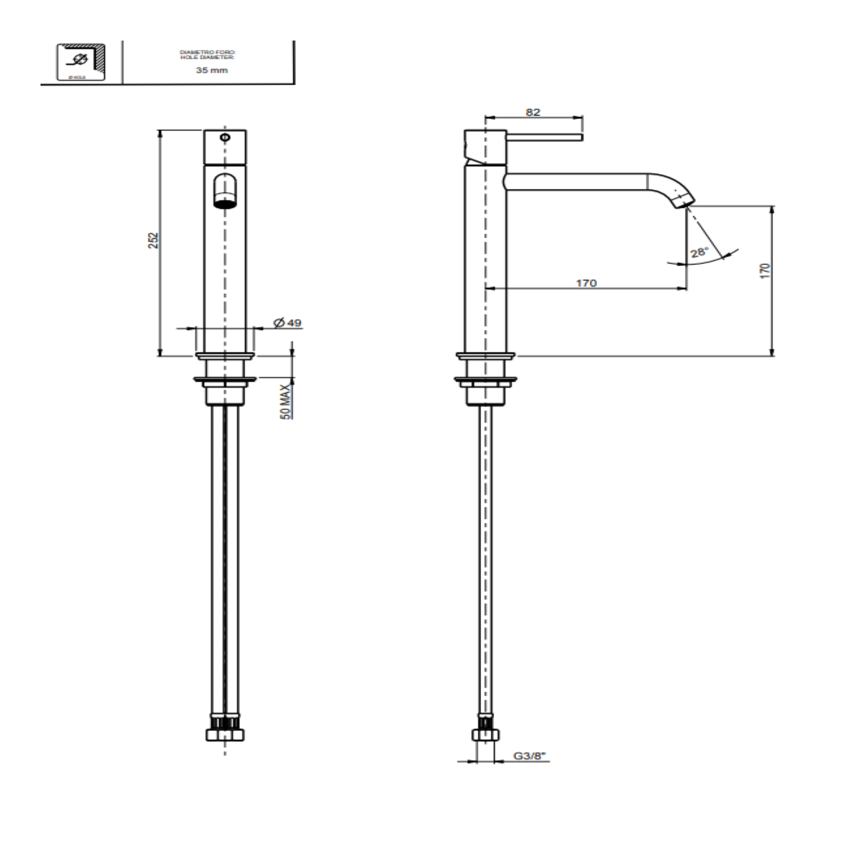 F.lli Frattini Pepe XL, Medium version single-lever washbasin mixer without waste