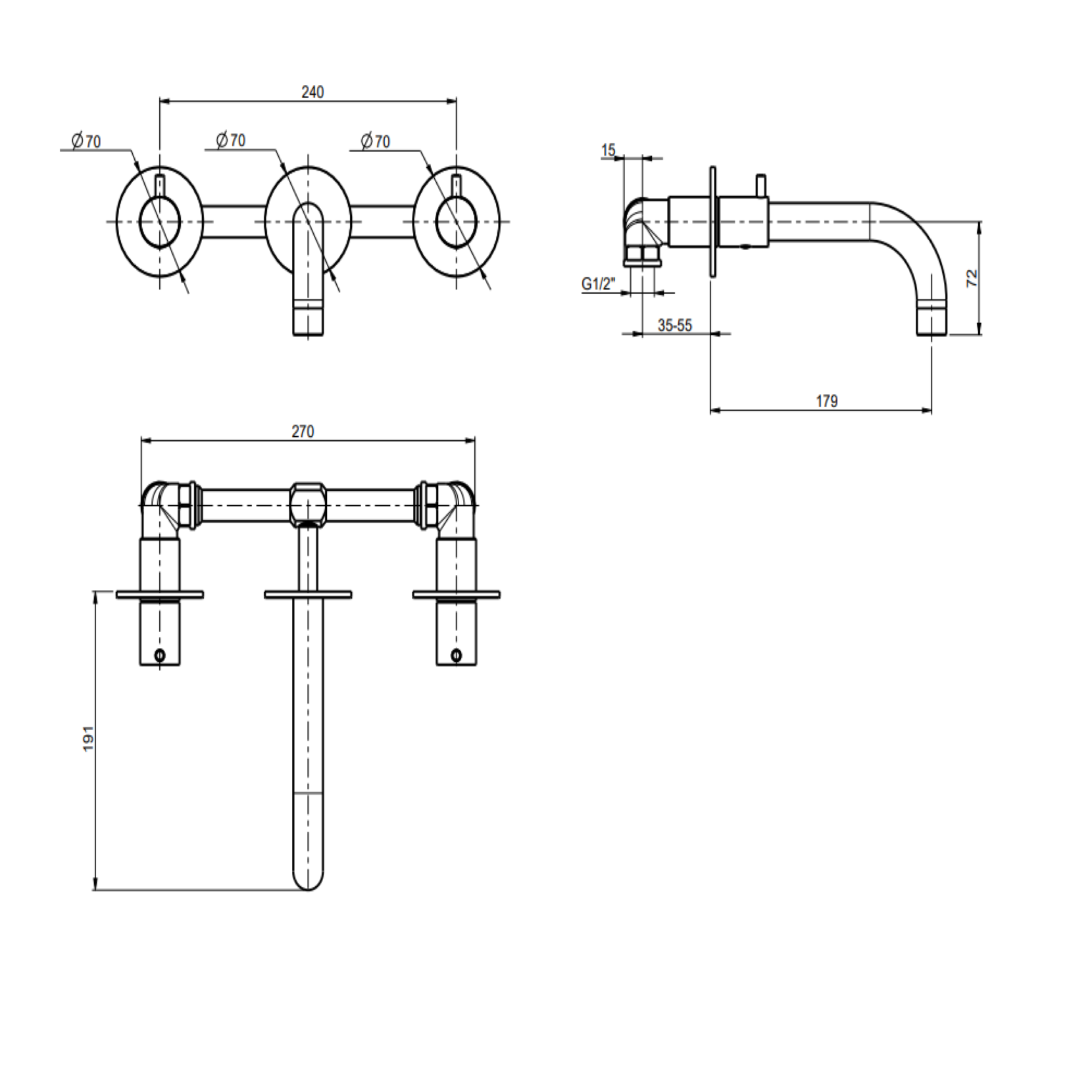 F.lli Frattini proposes the Contemporary collection with the Pepe XL series, in particular wall-mounted washbasin battery without complete drain, brass plates. The series is an excellent combination of essential and contemporary lines, for those who love the pure beauty of soft forms.