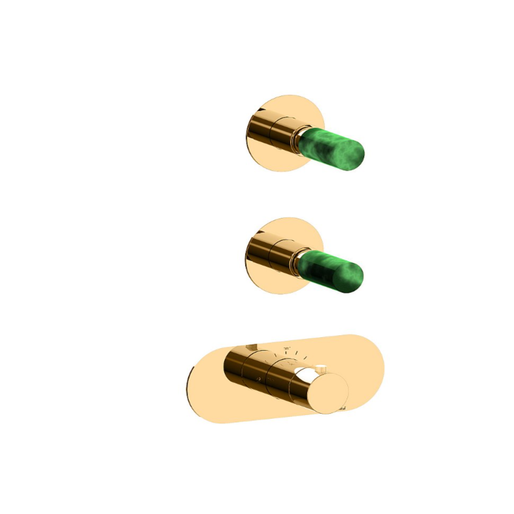 F.lli Frattini proposes the Contemporary collection with the Pepe M Style series, the built-in 2-way thermostatic shower mixer is an excellent combination of modern and traditional lines, with an overwhelming charm. Ideal for those who love the pure beauty of soft shapes with the addition of a note of color.