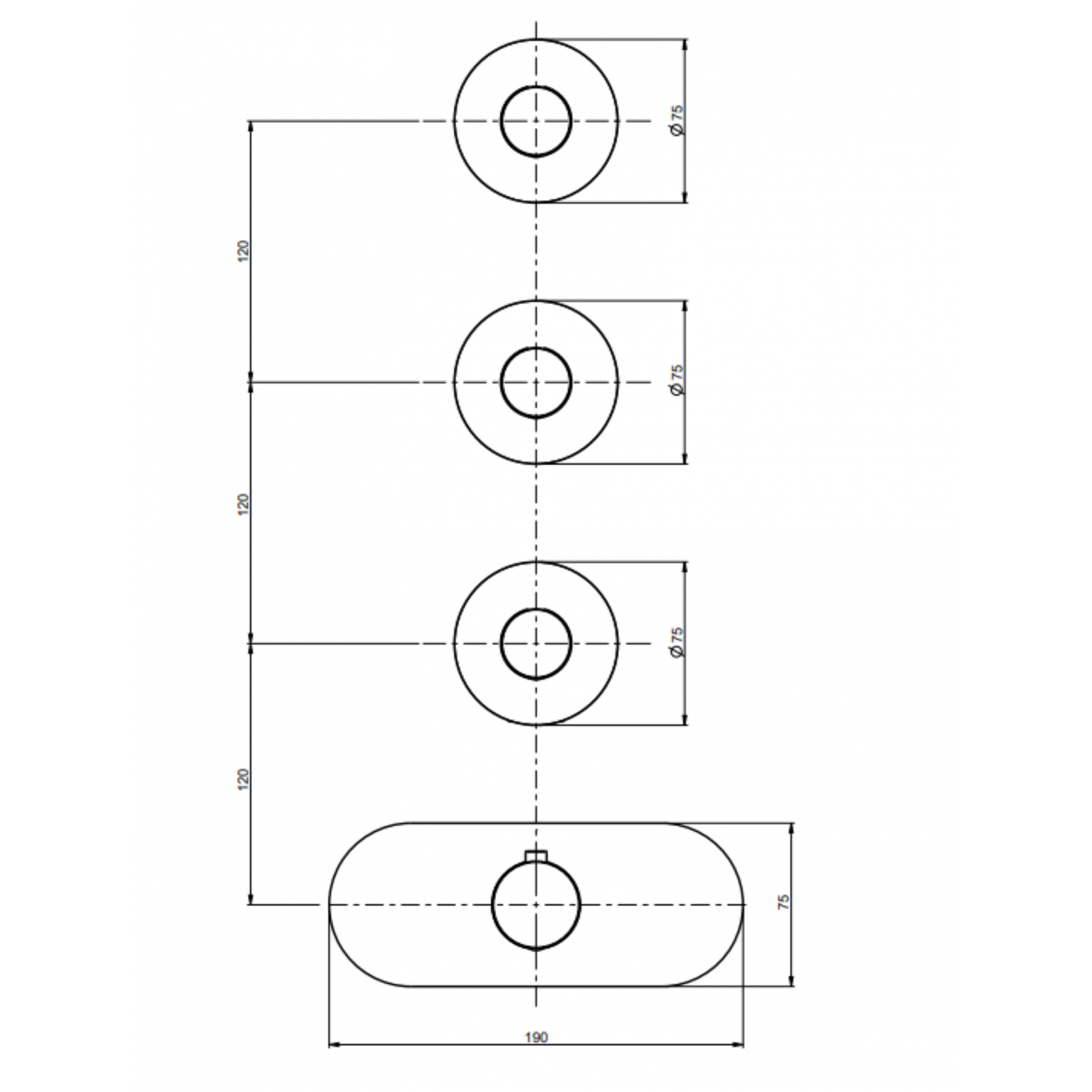F.lli Frattini Pepe M Style, Built-in thermostatic shower mixer 3 ways