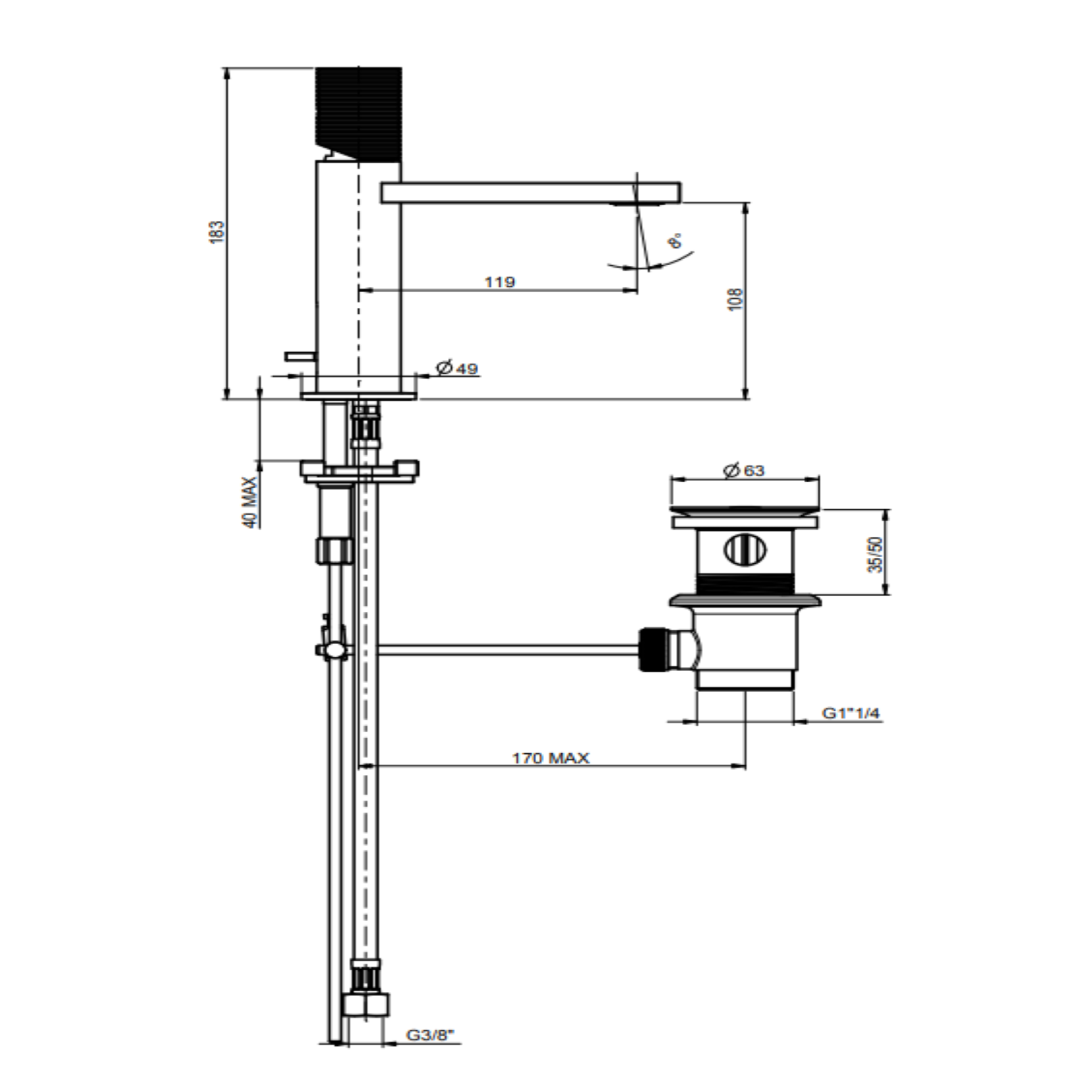 F.lli Frattini Gaia S, Single-lever washbasin mixer with 11/4 pop-up waste
