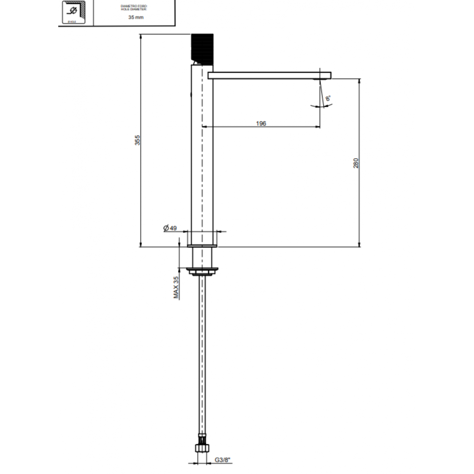 F.lli Frattini Gaia S, High version single-lever washbasin mixer without waste