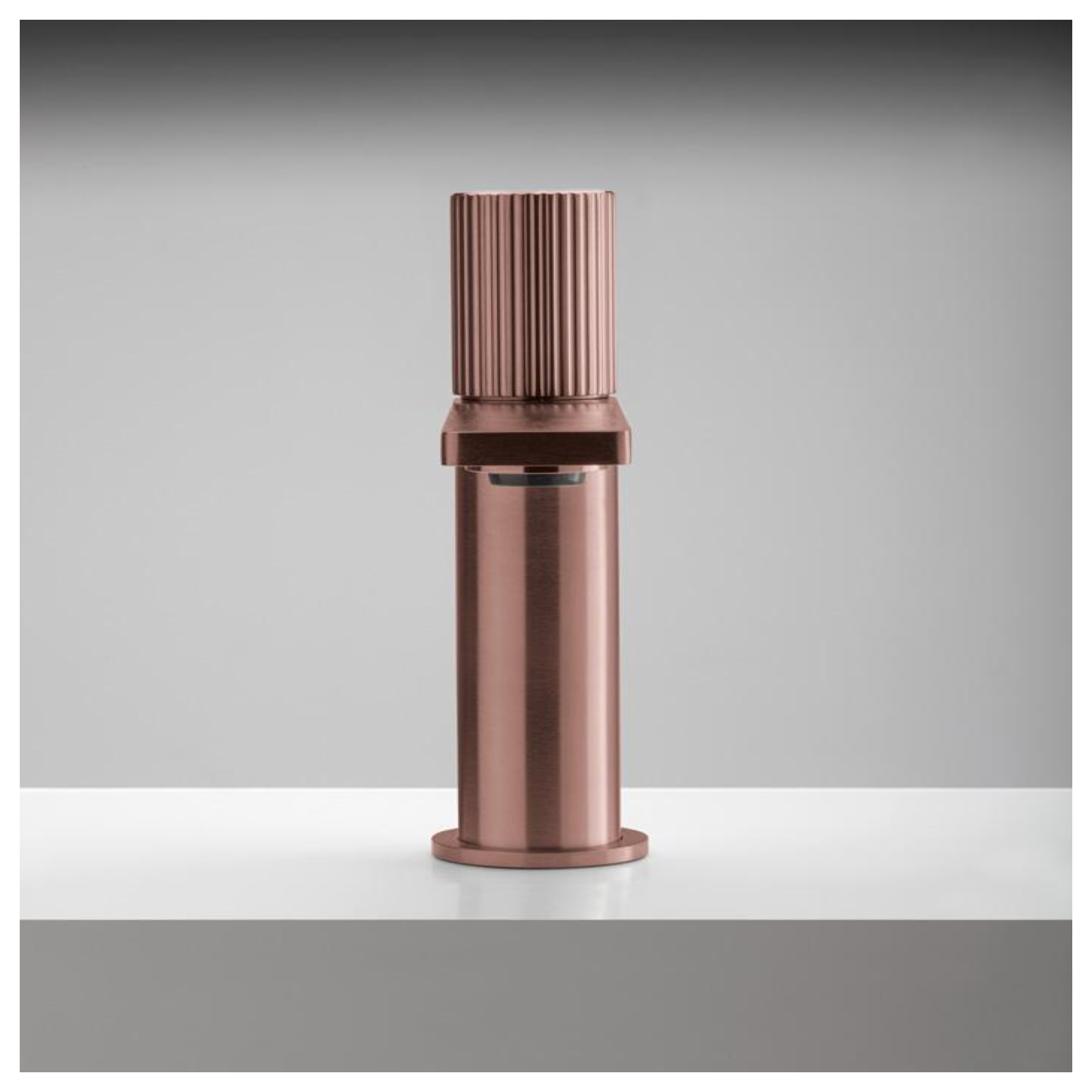 The essentiality of a minimal design finds its best expression in the Q316 series, made of AISI 316L stainless steel. The collection is proposed in the brushed version of the steel and in different finishes PVD in the variants Carbon, Anthracite, Bronzorame, Copper, Cognac and Orobianco. Q316 offers the possibility to opt for the paddle knob, or for the cylindrical knob with smooth finish that becomes in effect an extension of the tap body.