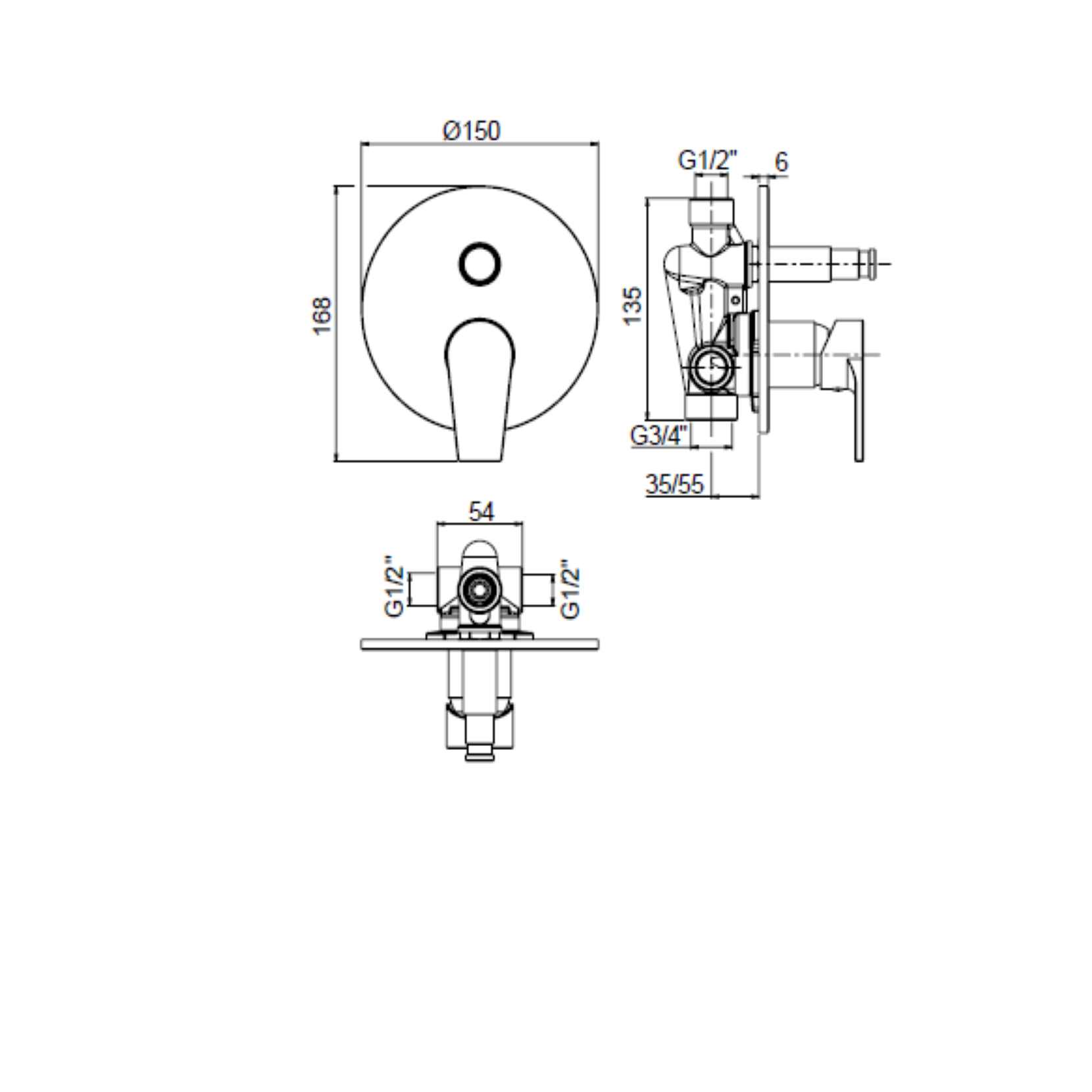 F.lli Frattini Gioia, Built-in single lever with automatic diverter, ABS plate