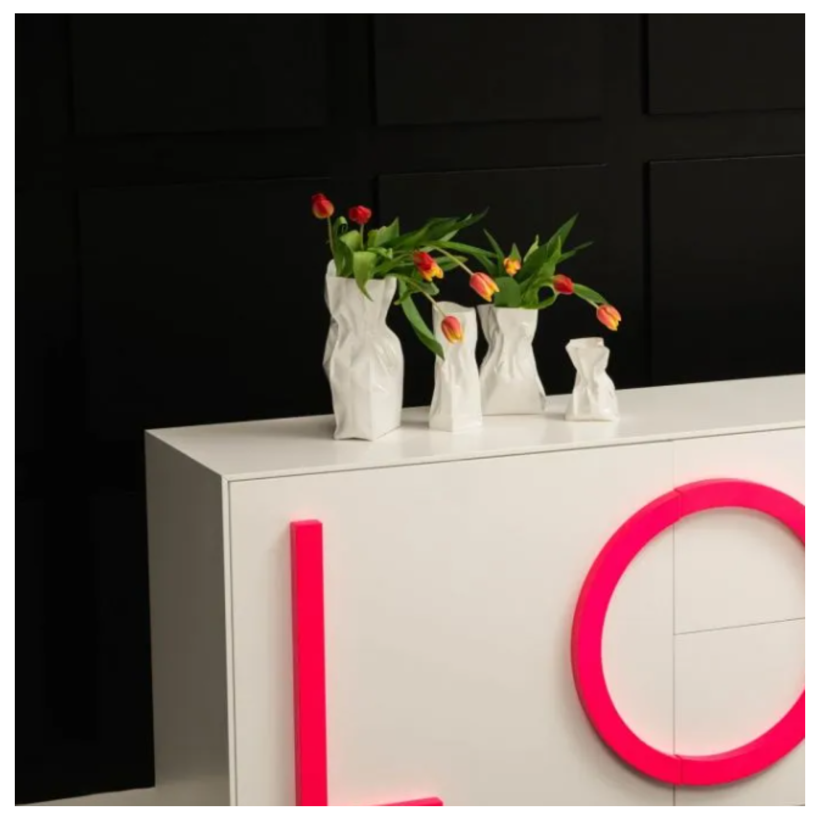 Xie Dong, designer of the Adelaide series, fell in love with Bone China porcelain: a delicate and sensitive material ideal for her creations. The enamel highlights the pure lines and perfectly reproduces the characteristics of the paper. This vase with a crumpled shape is inspired by the bags used to wrap bread that gives a semblance of lightness and serenity.