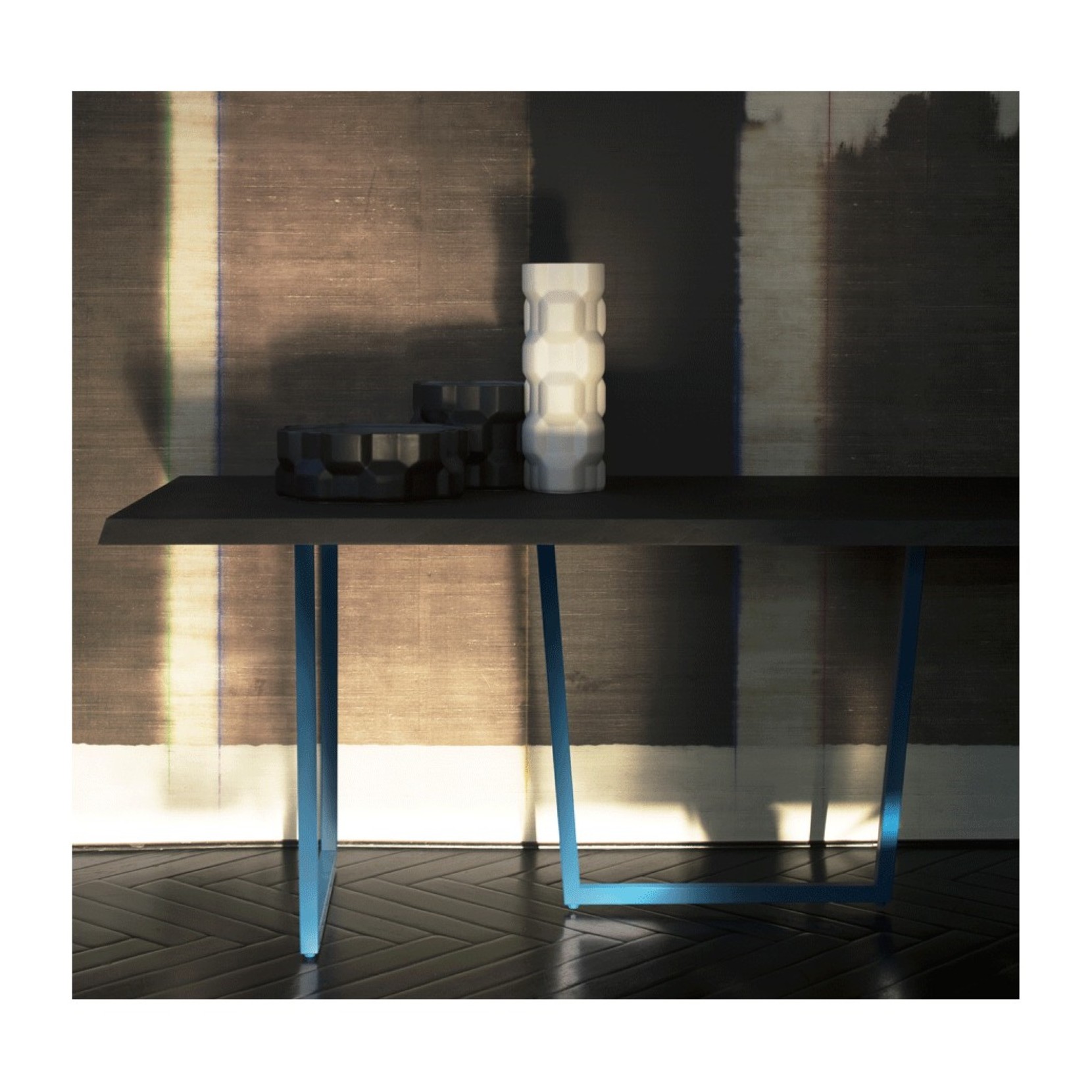 The Gear collection by Philippe Bestenheider has elegant and rigorous shapes, in delicate matt white, matt black, matt red and gold finishes. The shape comes from the idea of a geometric game inspired by the shape of the gears, which crosses vertically and horizontally, to create a three-dimensional surface.