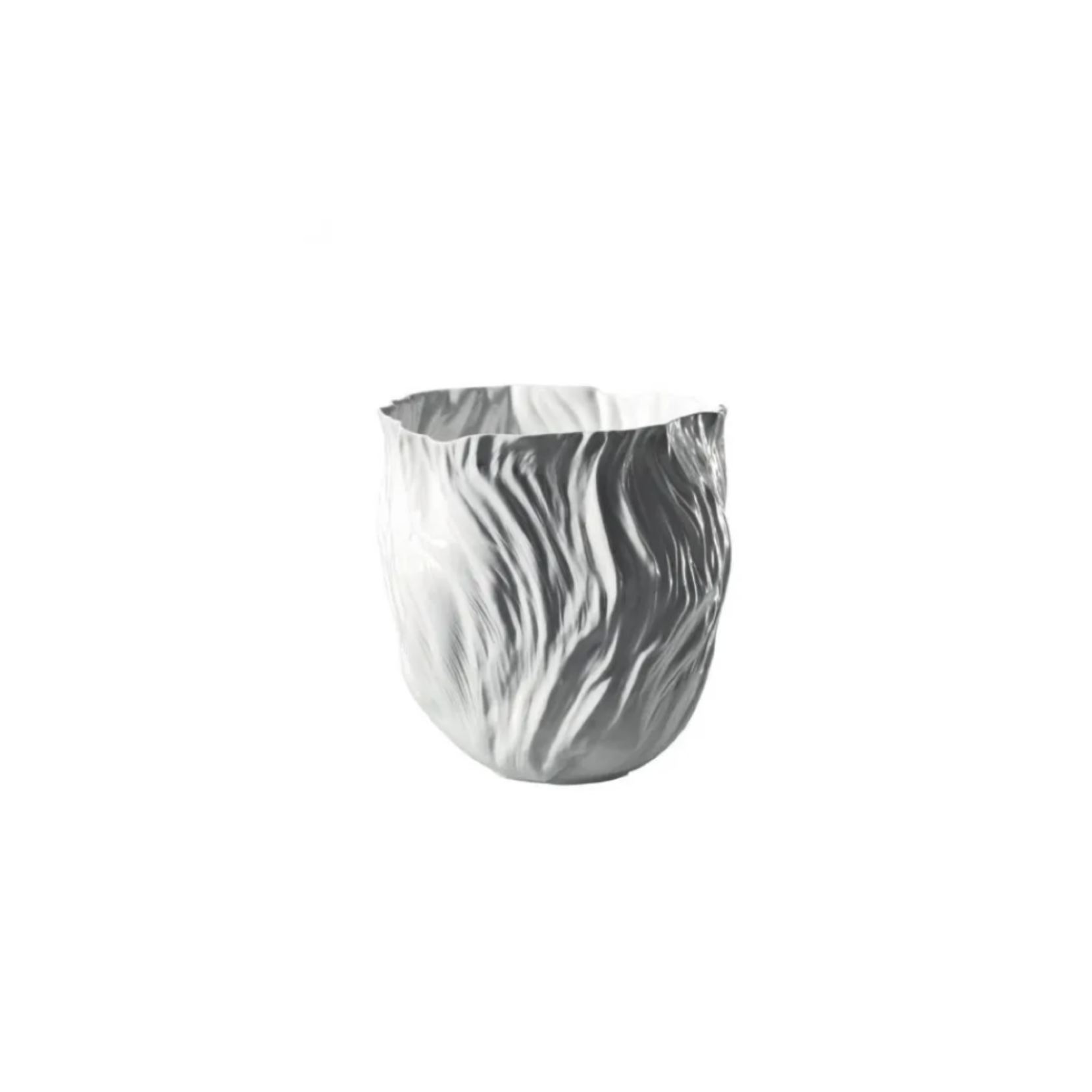 Xie Dong, designer of the Adelaide series, fell in love with Bone China porcelain: a delicate and sensitive material ideal for her creations. The enamel highlights the pure lines and perfectly reproduces the characteristics of the paper. This vase with a crumpled shape is inspired by the bags used to wrap bread that gives a semblance of lightness and serenity.