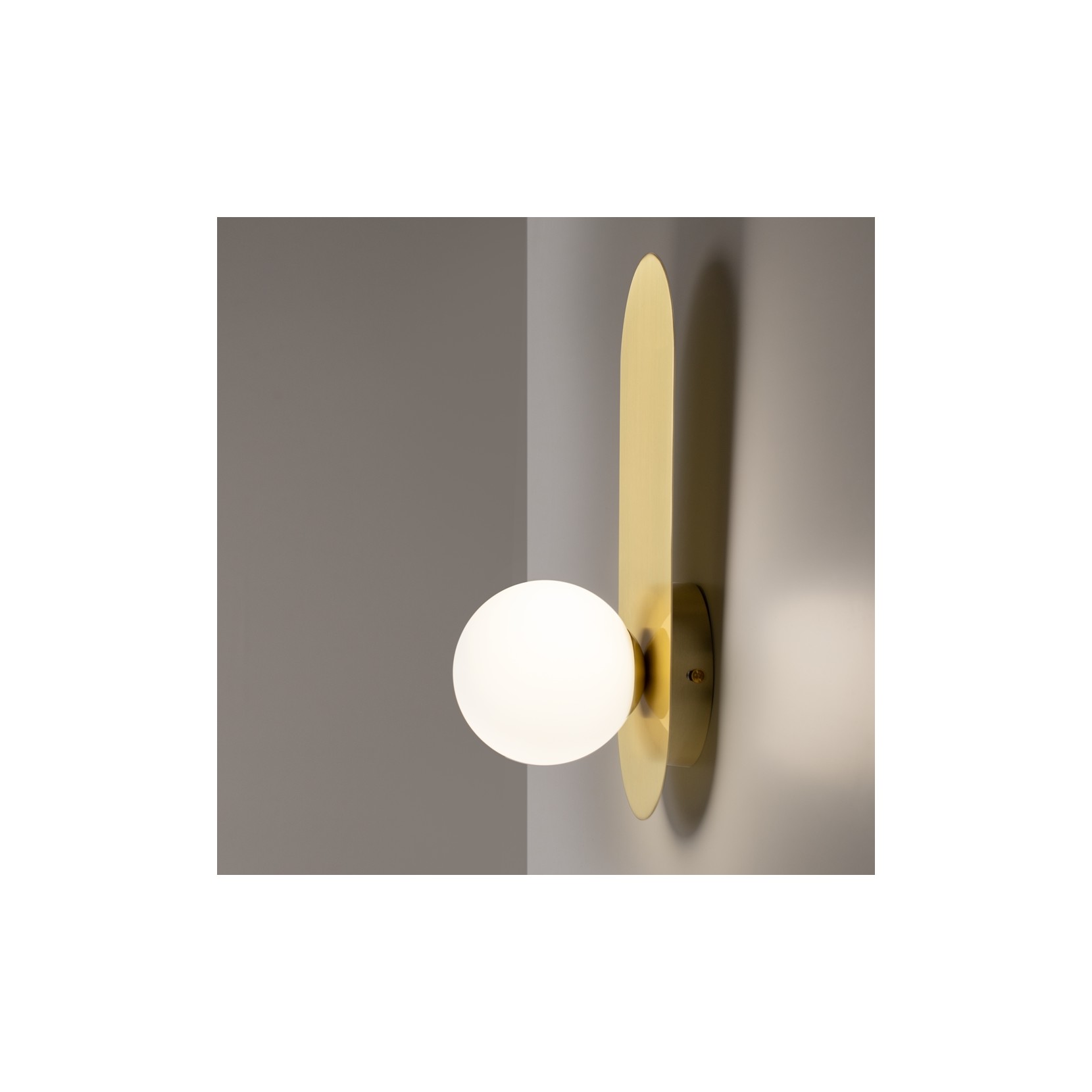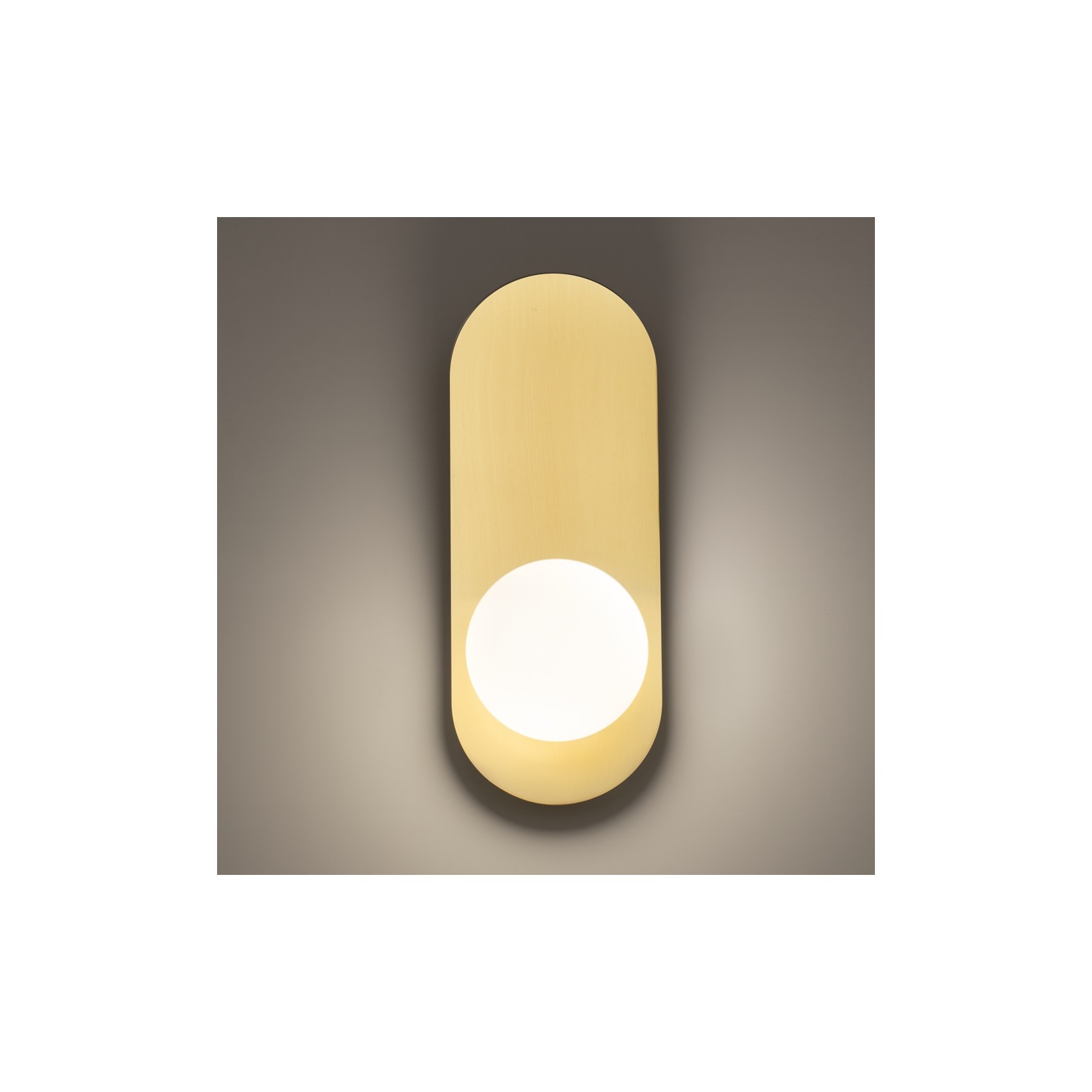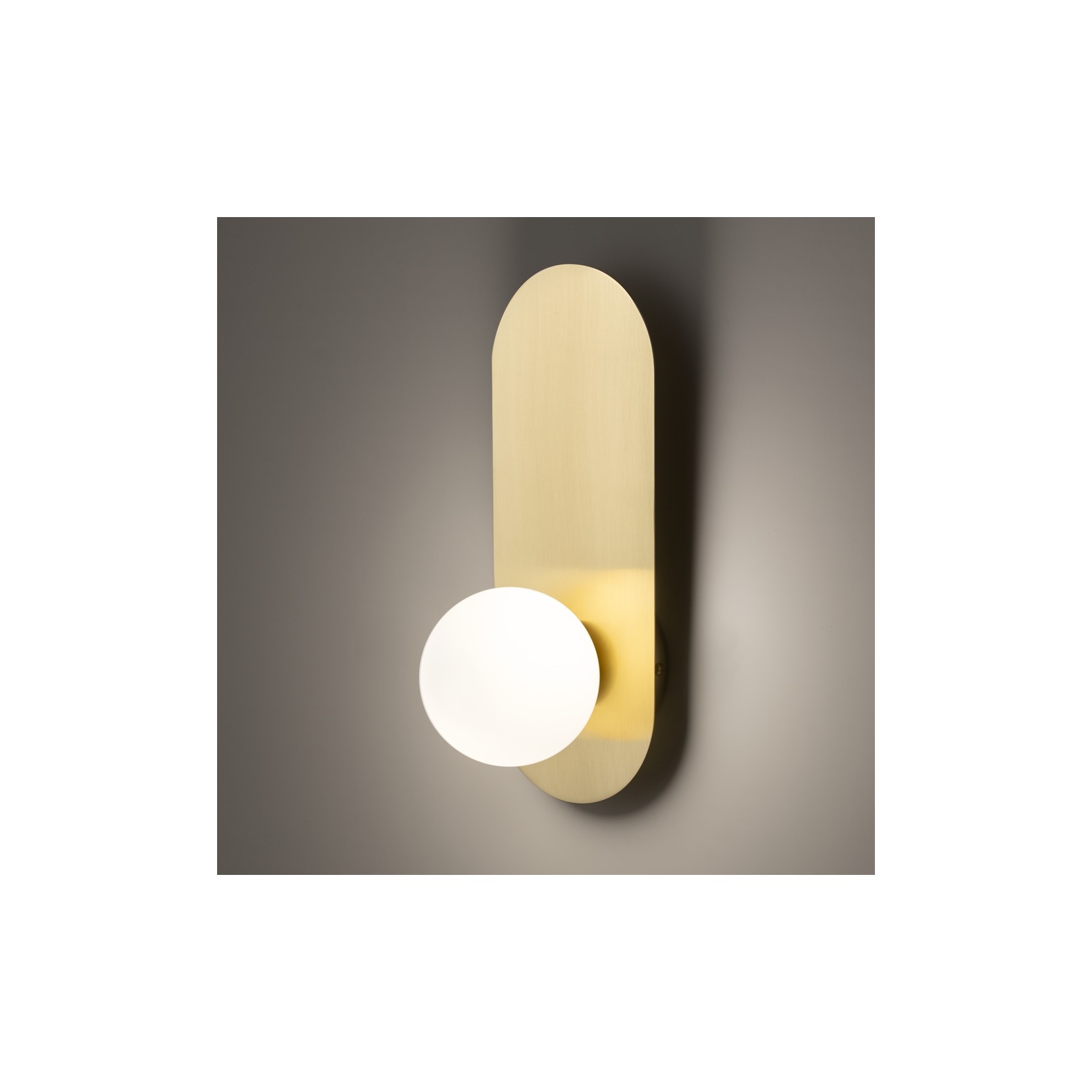 The round lampshades in white opaque glass and the thin metal base in oval shape combine minimalist aesthetics and practicality.