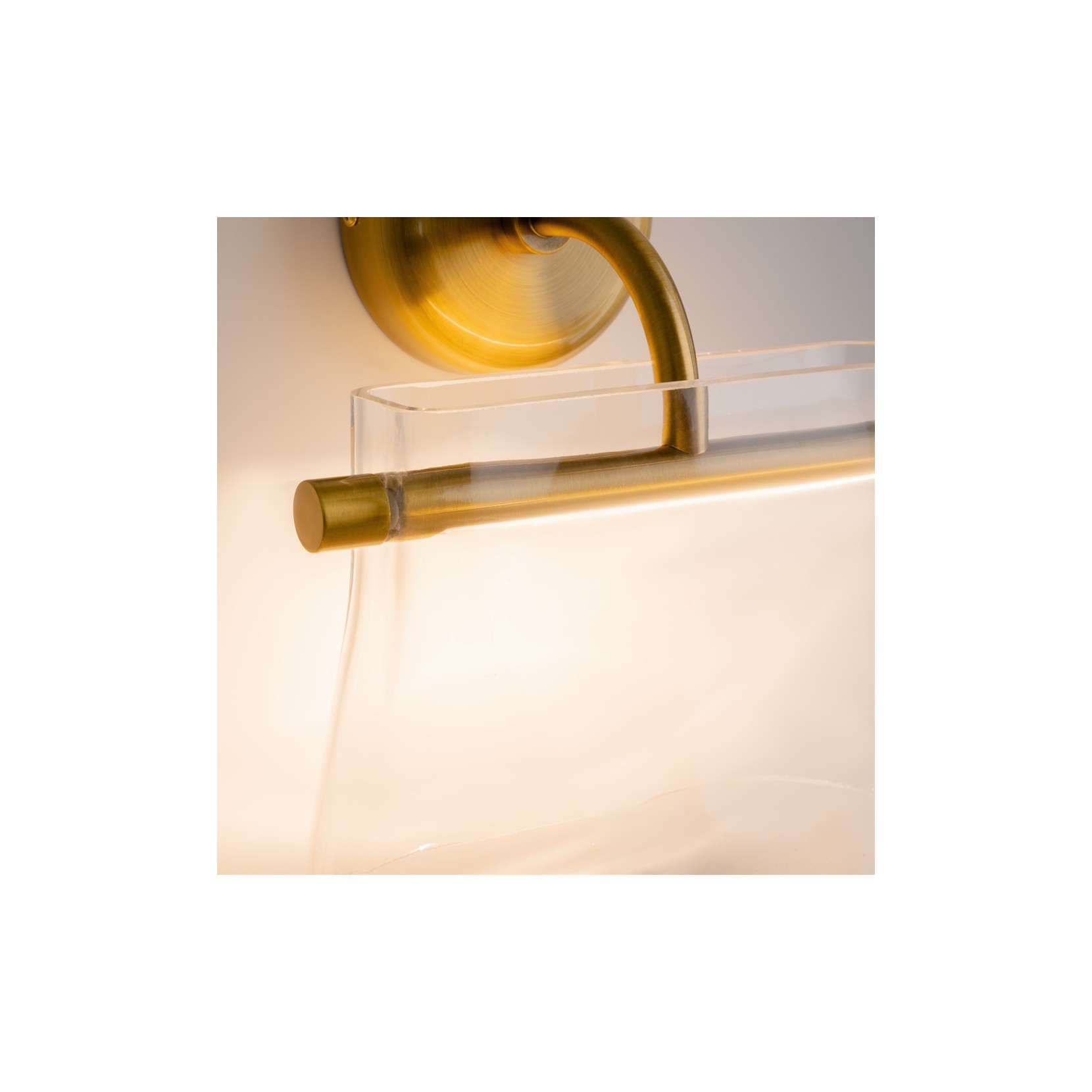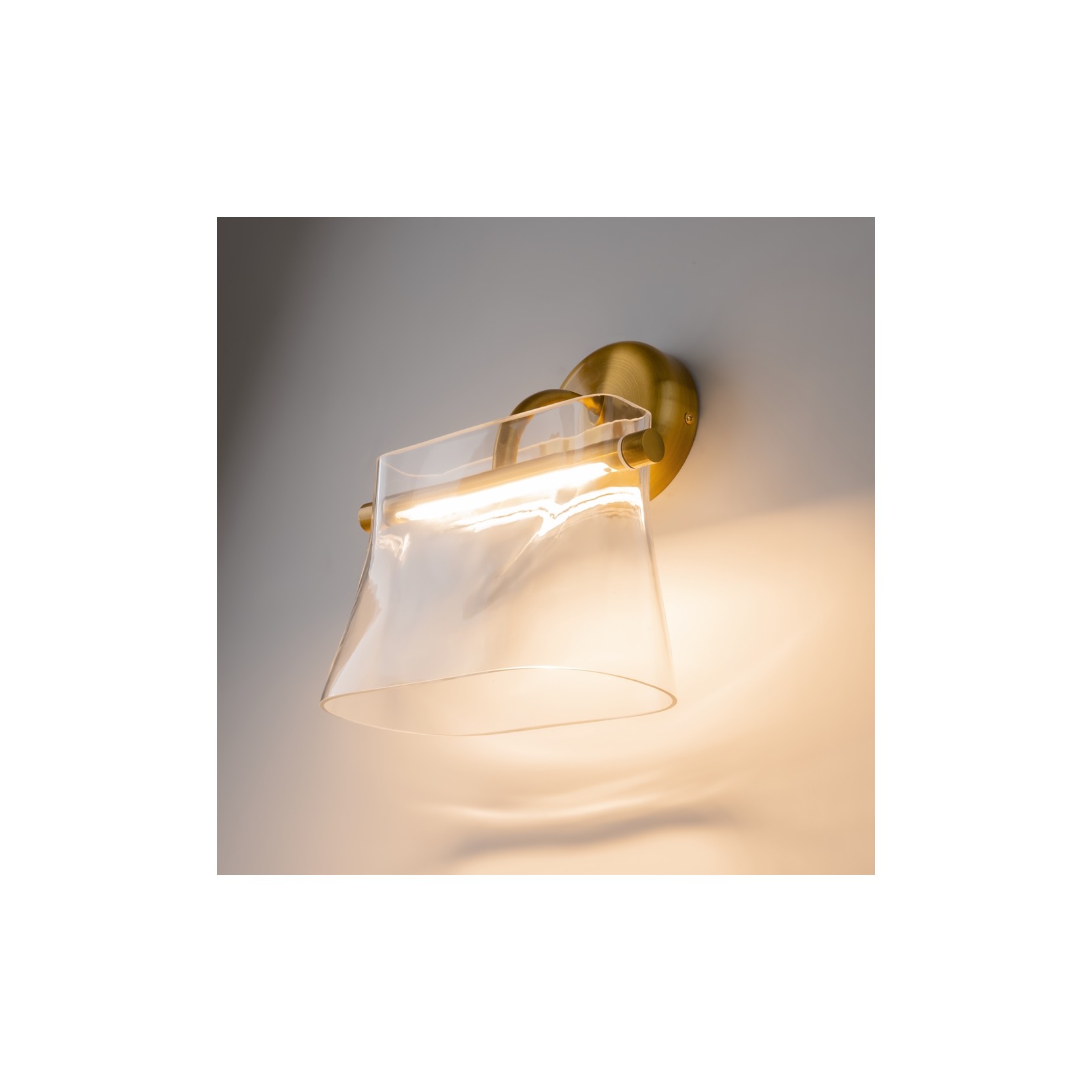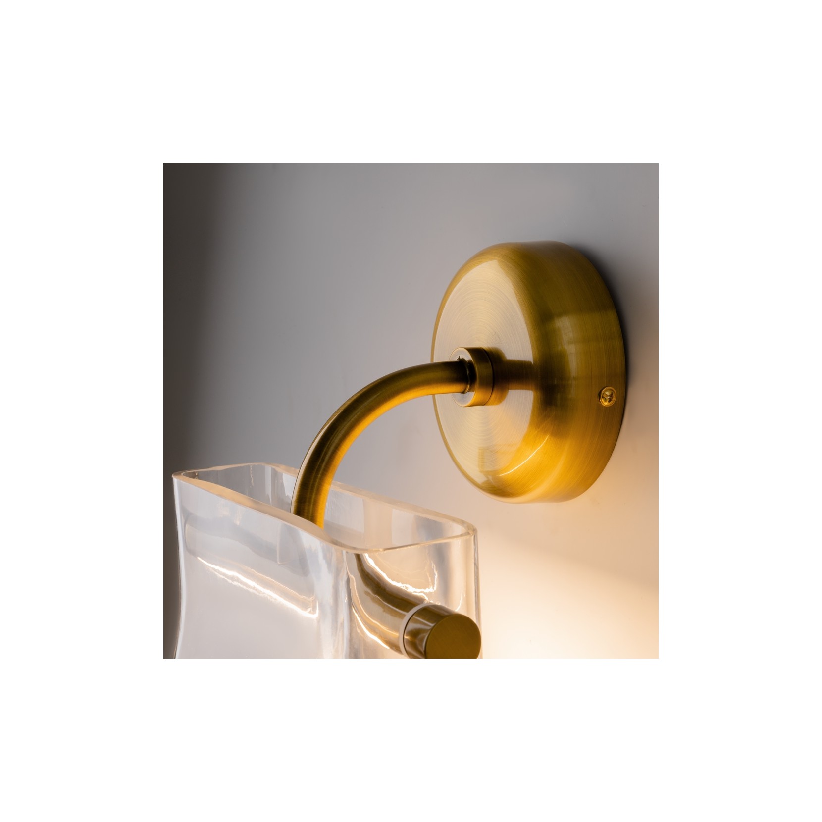 The metallic bases, sinuous and refined, recall the fashion stage, while the clear glass lampshades evoke lightness and fluidity.