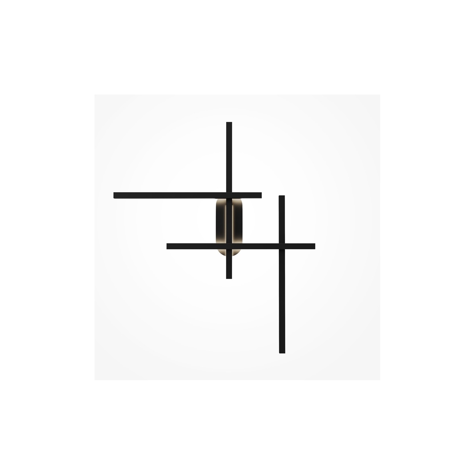 The Halo wall lamp transforms the wall into a dynamic canvas through an intersection of minimalist profiles. Featuring an asymmetrical black metal grid structure, the lamp plays with different lengths of vertical and horizontal elements to create an installation reminiscent of architectural abstraction. It is not just a lighting fixture, but a design object that defines the character of the space even when turned off.