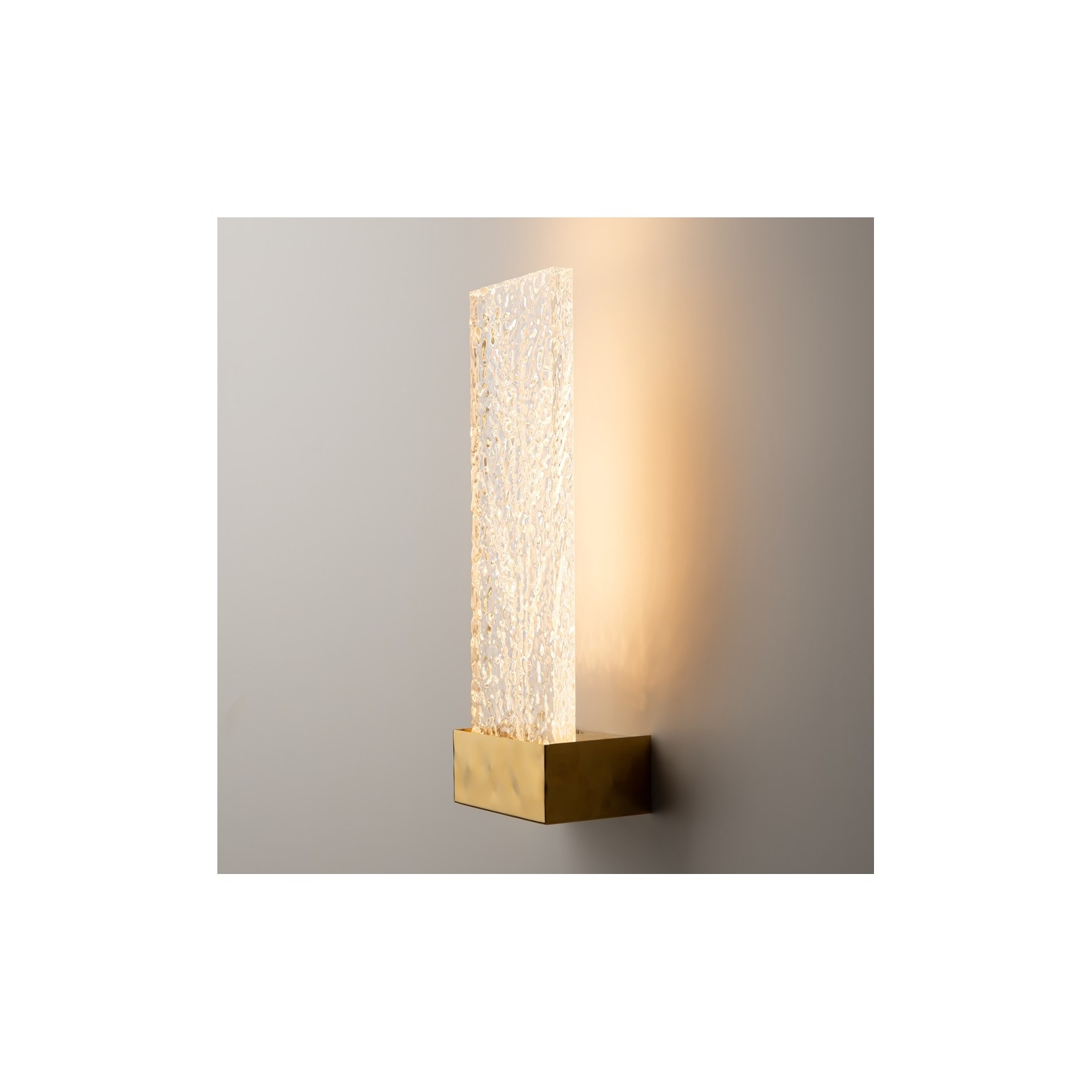 Add a touch of sculptural preciousness to your walls with the Ornate wall lamp, a lighting fixture that blends the elegance of crafted crystal with the solidity of satin gold. This lamp transforms light into a vibrant visual experience, ideal for environments seeking a contemporary and sophisticated luxury aesthetic.