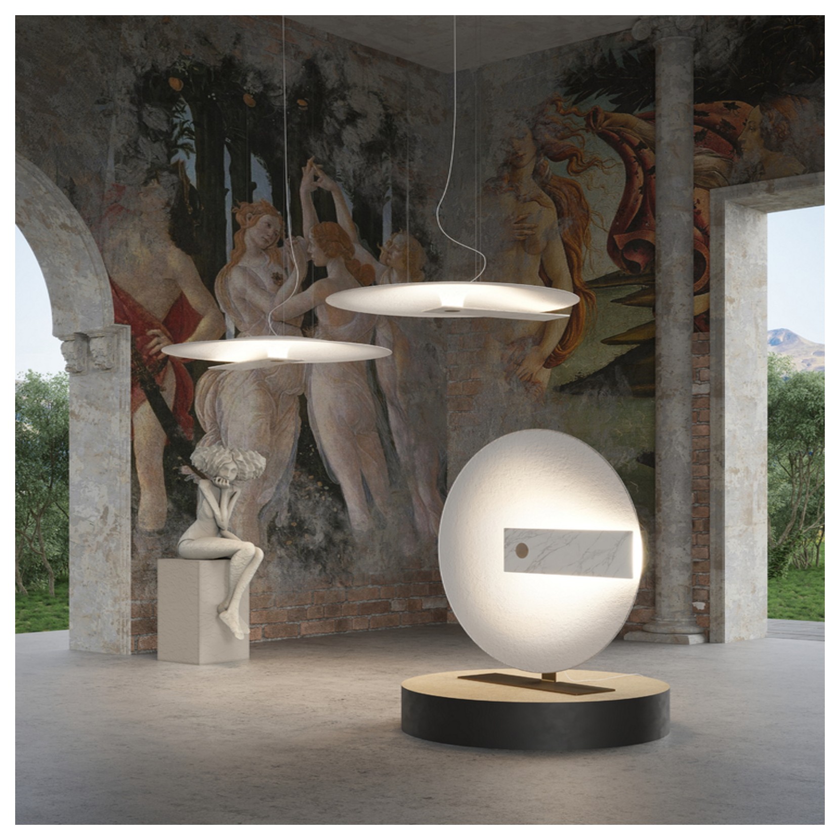 Hind Rabii proposes the lamp Meridiana, glass fiber lampshade and details in wenge oak or white marble. Meridiana reverses the very meaning of the word, here light is not the medium but the identity principle. The floor lamp emits a delicate but decisive light.